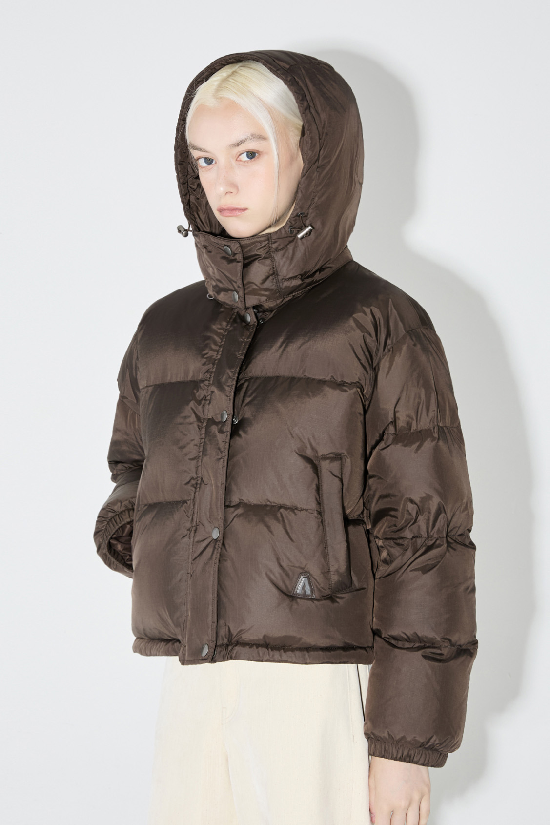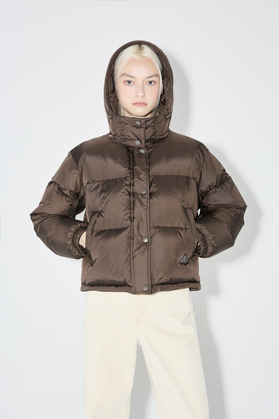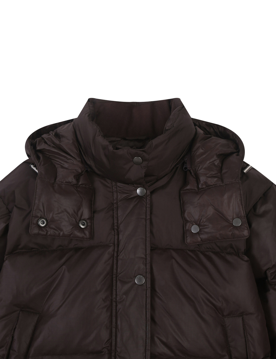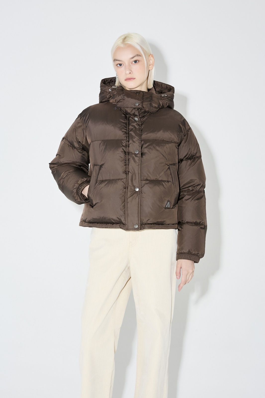 *다양한 날씨와 상황에 맞게 조절할 수 있어 실용적이며, 스타일리시한 디자인으로 다양한 코디에 활용할 수 있는 유광과 무광의 대비가 특징인 후드 탈부착 숏다운 점퍼