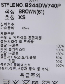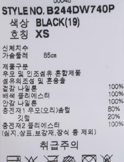 브랜드 홈 바로가기| 제품소재 | [겉감]나일론100% [배색]폴리에스터100% [안감]나일론100% [충전재1]우모(오리)솜털80% 깃털20% [충전재2]폴리에스터100% |