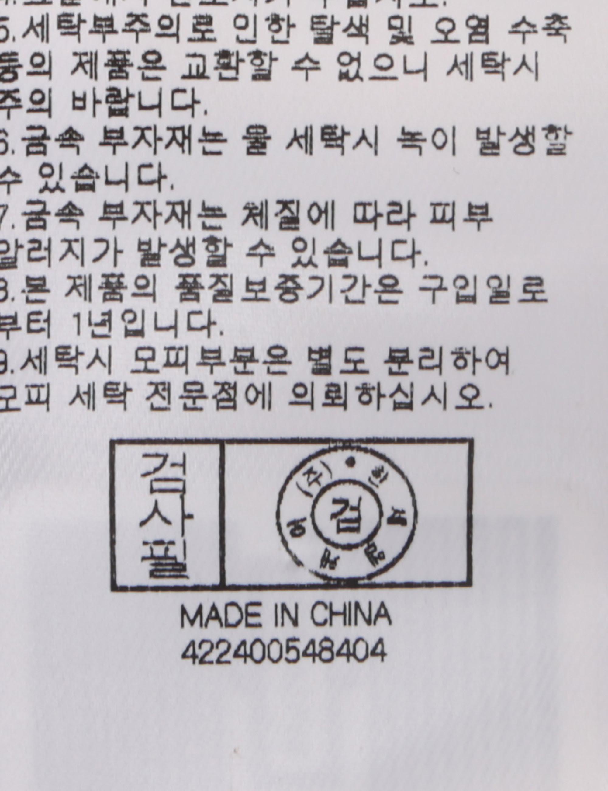 | 세탁방법 및 취급시 주의사항 | 본 제품은 반드시 드라이크리닝 하십시오.(세탁라벨참고) |