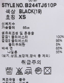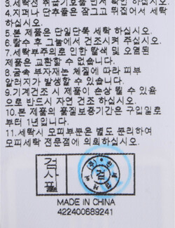| 세탁방법 및 취급시 주의사항 | 본 제품은 손세탁 하십시오.(케어라벨참고) |