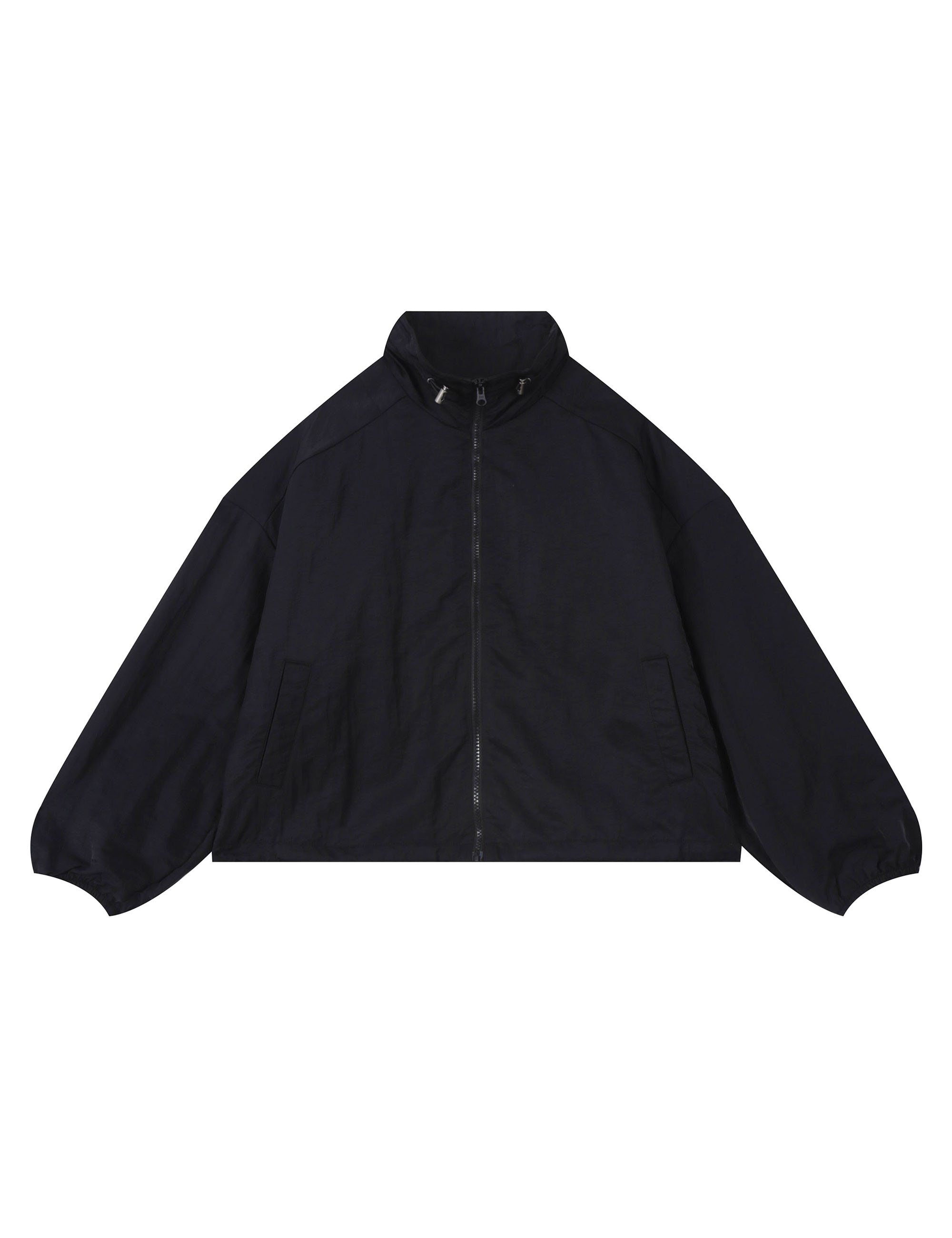 * 나일론100 소재를 사용한 루즈핏 하이넥 바람막이