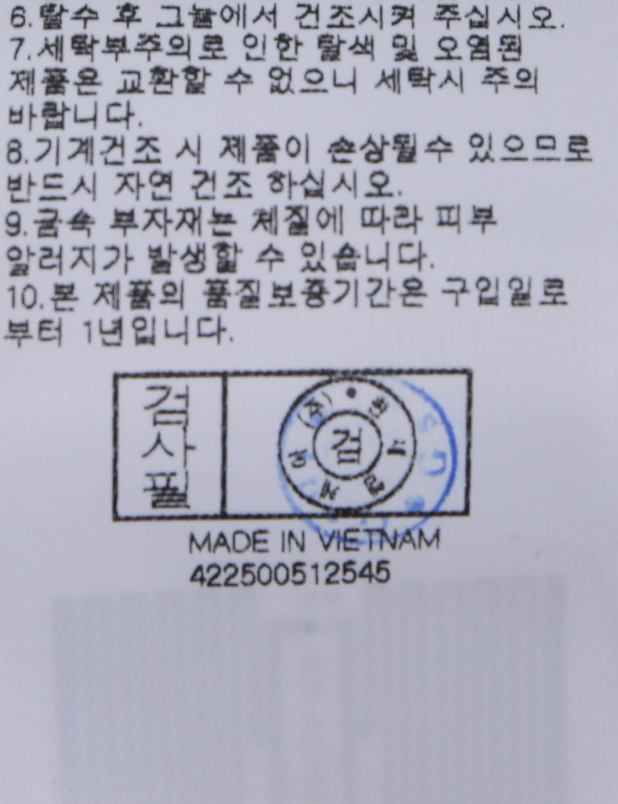 | 세탁방법 및 취급시 주의사항 | 중성세제로 단 시간내에 세탁하십시오.(케어라벨참고) |