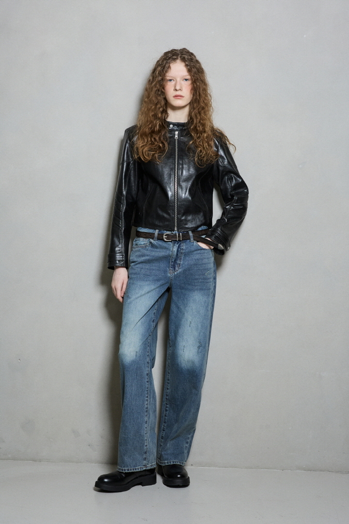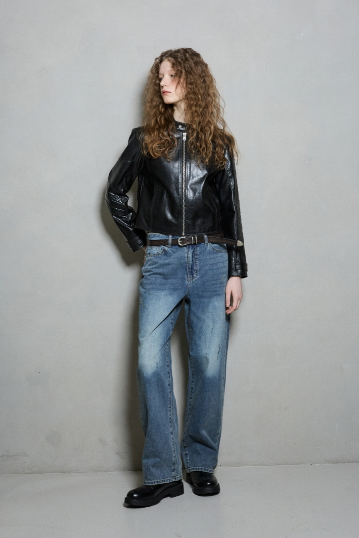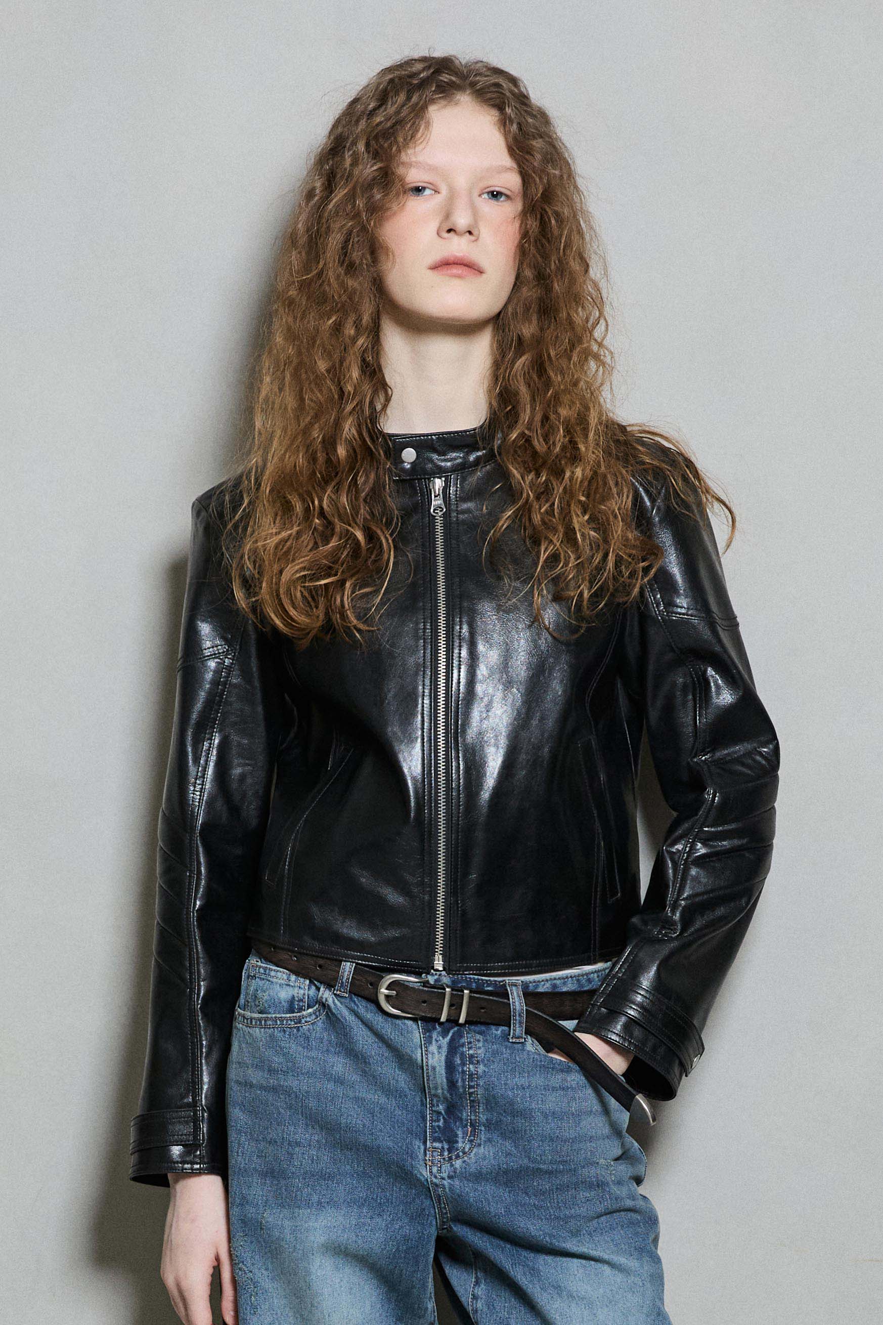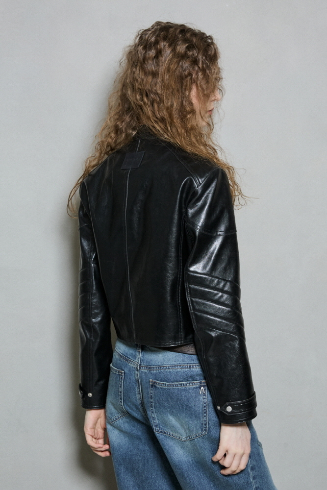 *고급스러운 광택과 질감을 그래도 재현한 인조가죽 소재를 사용한 슬림핏 라이더 자켓