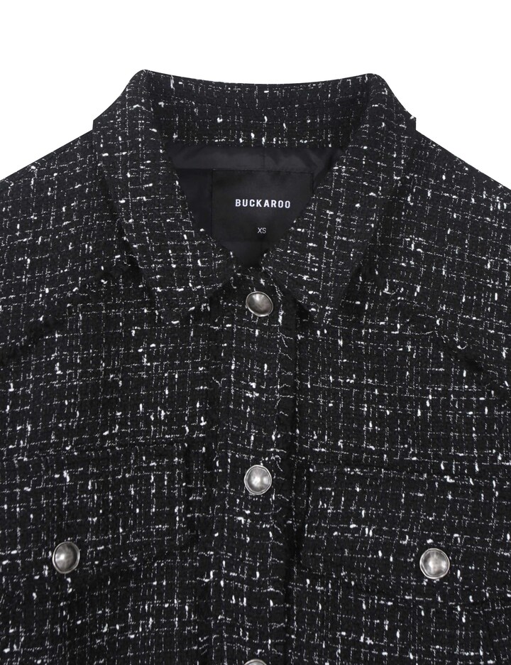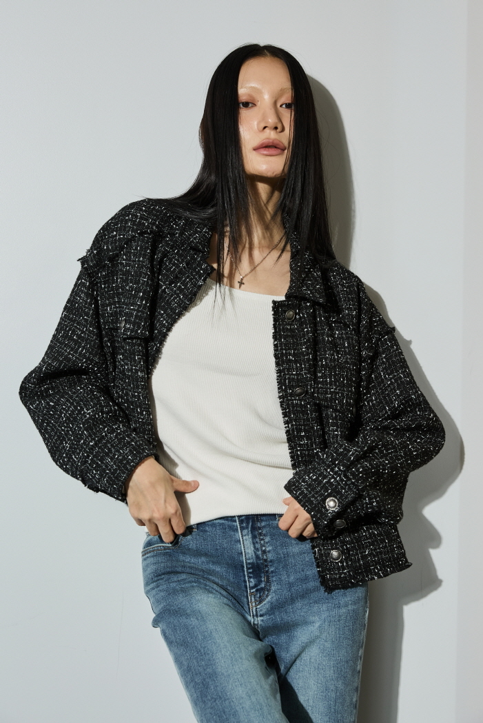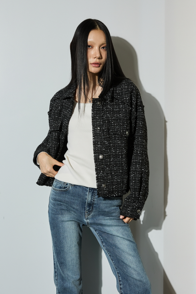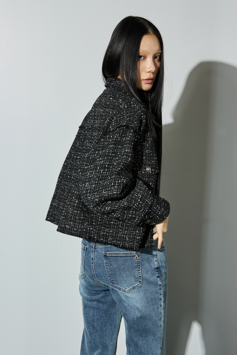 * 폴리에스테르 100 트위드 소재를 사용하여 간절기 자켓으로 다양한 아이템에 어울리는 트위드 아웃포켓 점퍼
