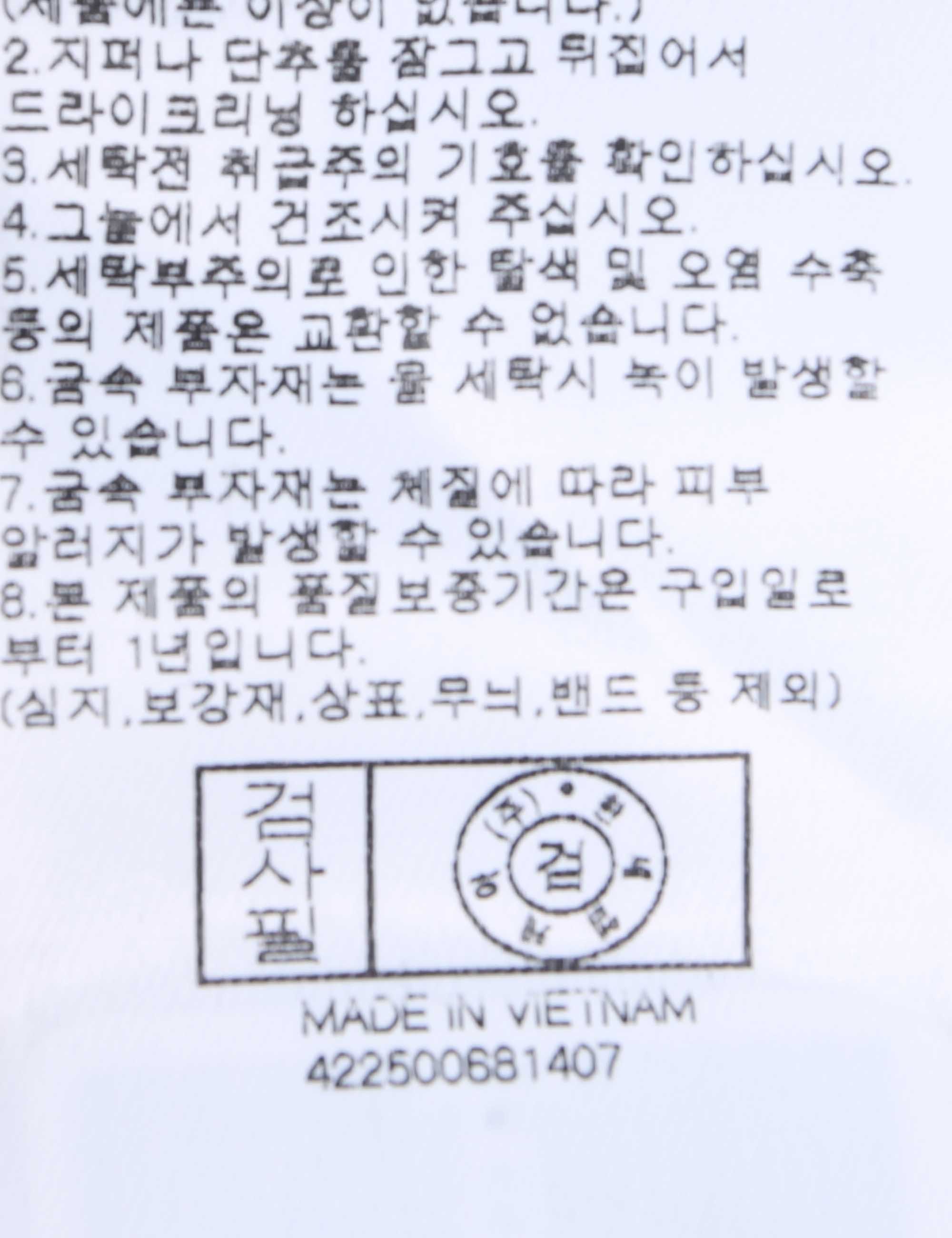 | 세탁방법 및 취급시 주의사항 | 본 제품은 반드시 드라이크리닝 하십시오.(세탁라벨참고) |