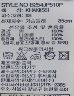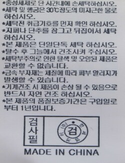 | 세탁방법 및 취급시 주의사항 | 본 제품은 손세탁 하십시오.(케어라벨참고) |