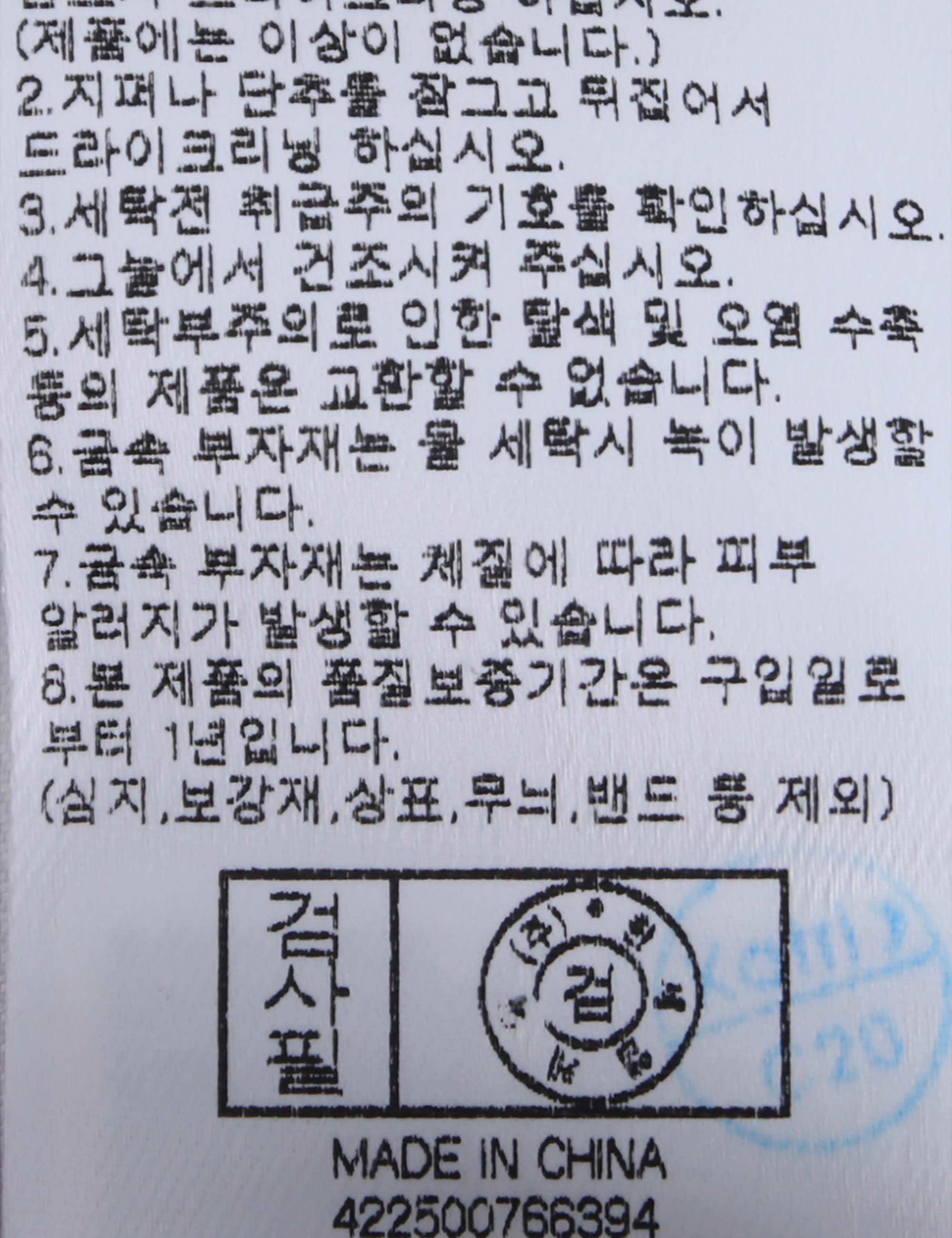 세탁방법 및 취급시 주의사항 본 제품은 반드시 드라이크리닝 하십시오.(세탁라벨참고)