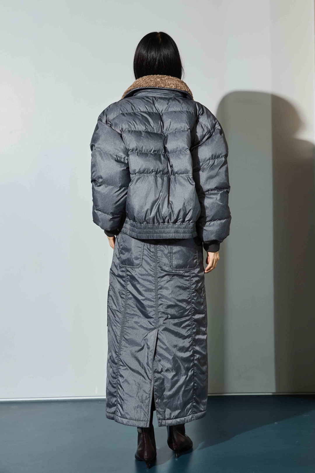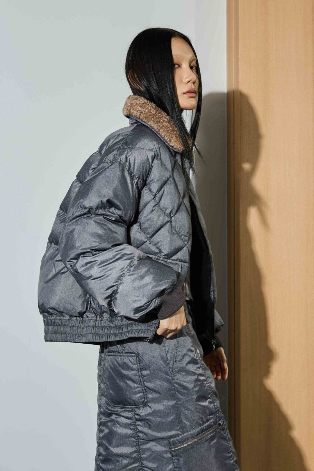 *워싱느낌은 주는 프린트 원단을 사용한 양털카라 패딩 점퍼