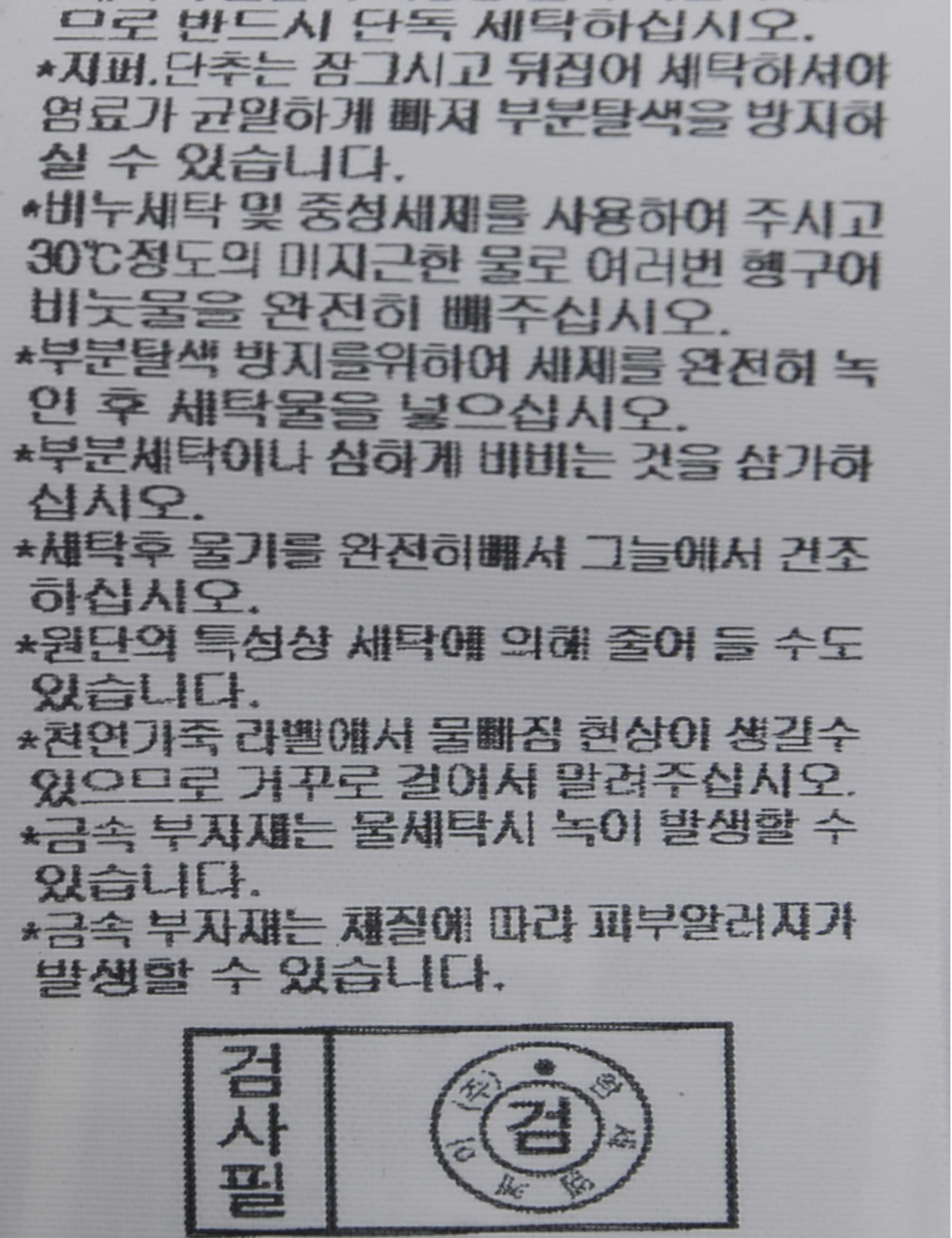 세탁방법 및 취급시 주의사항 본 제품은 손세탁 하십시오.(케어라벨참고)