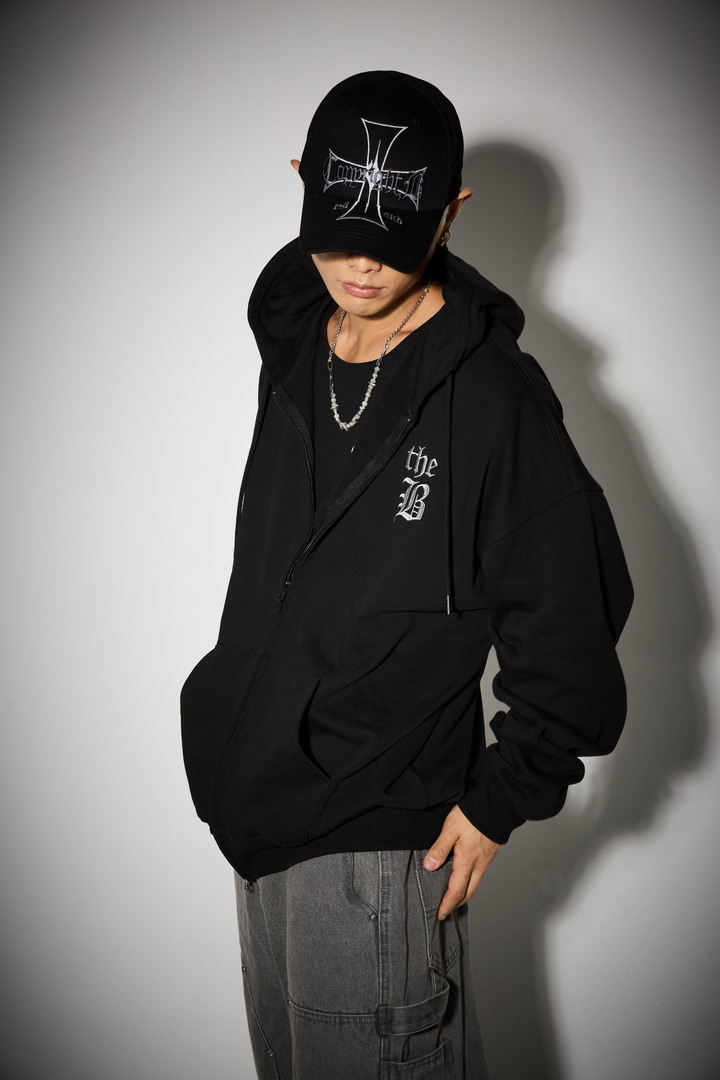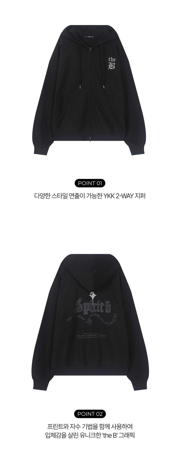 오버핏 실루엣에 빈티지 아트웍 포인트를 더한 [the B] 후드집업