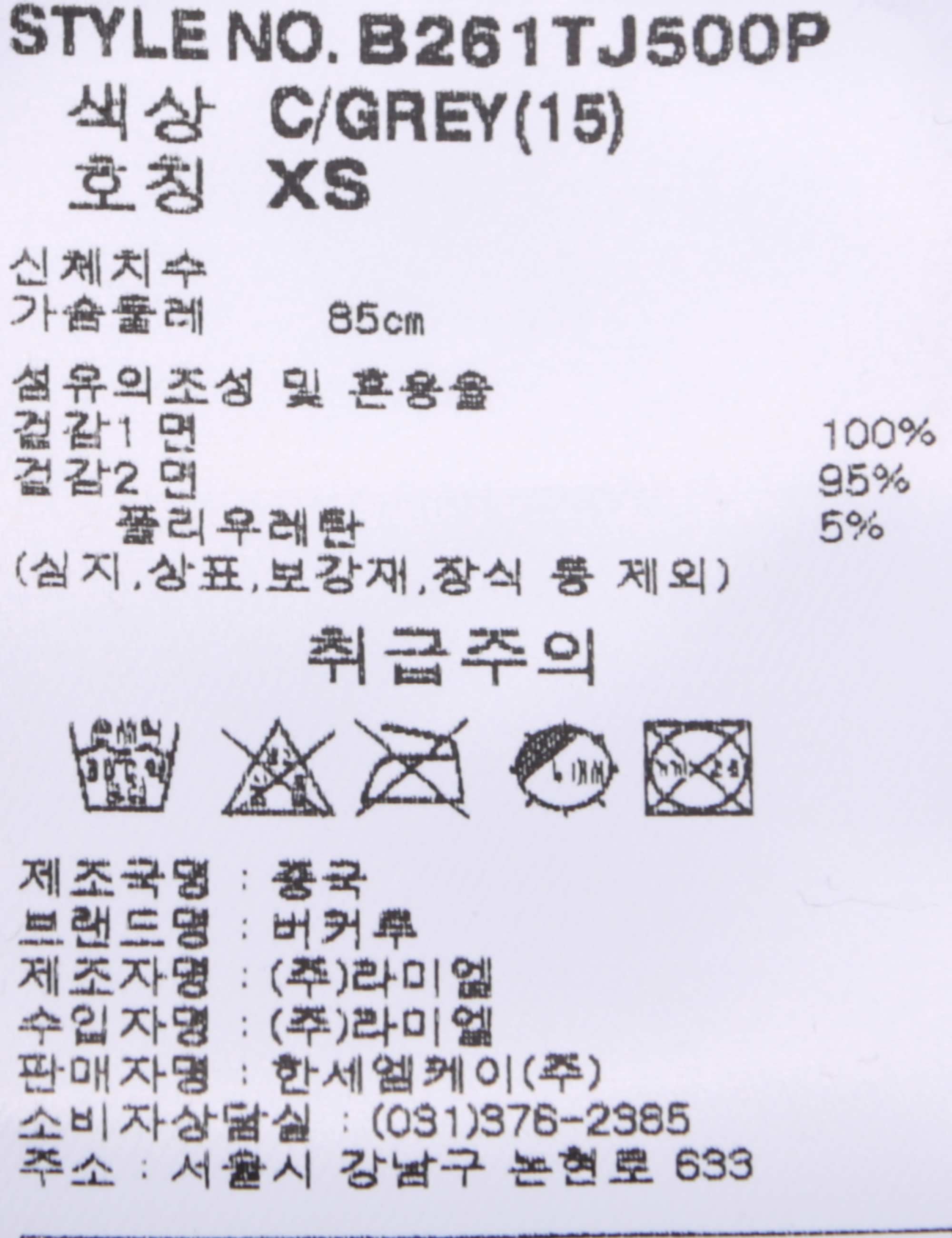 제품소재 [겉감1]면100% [겉감2]면95% 폴리우레탄5%