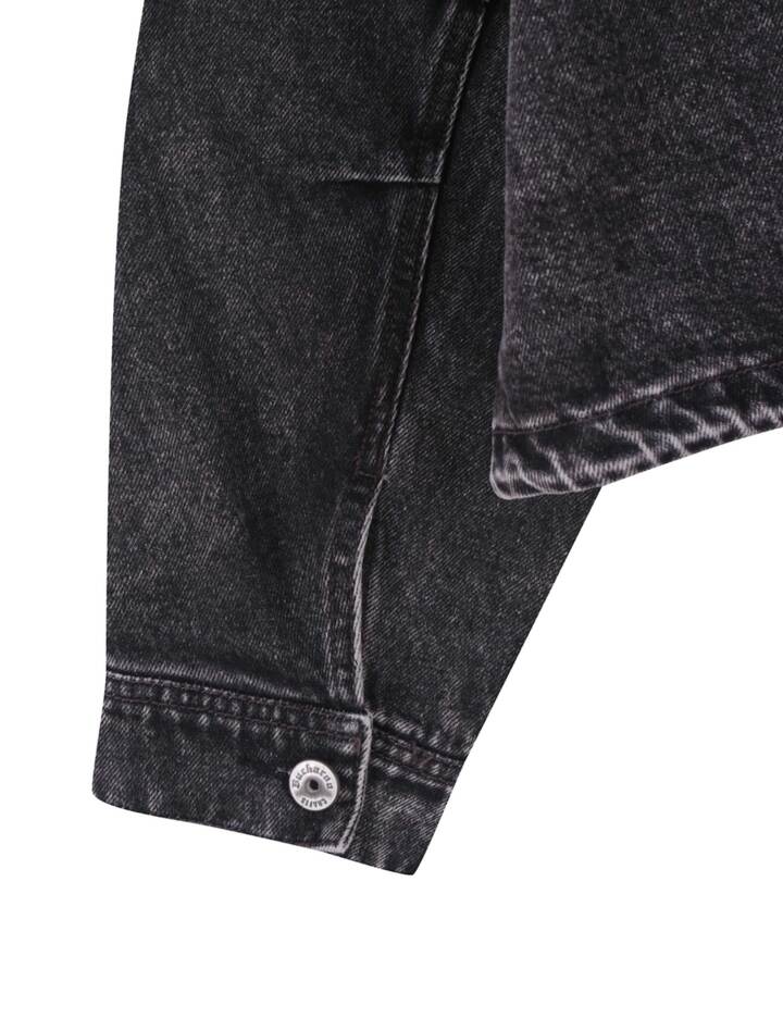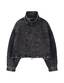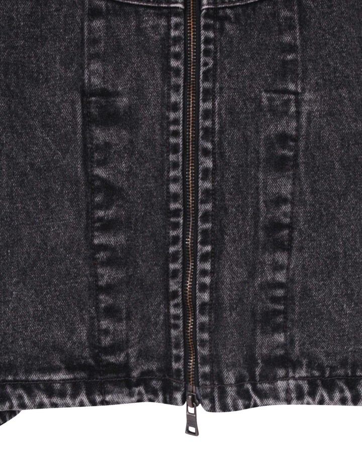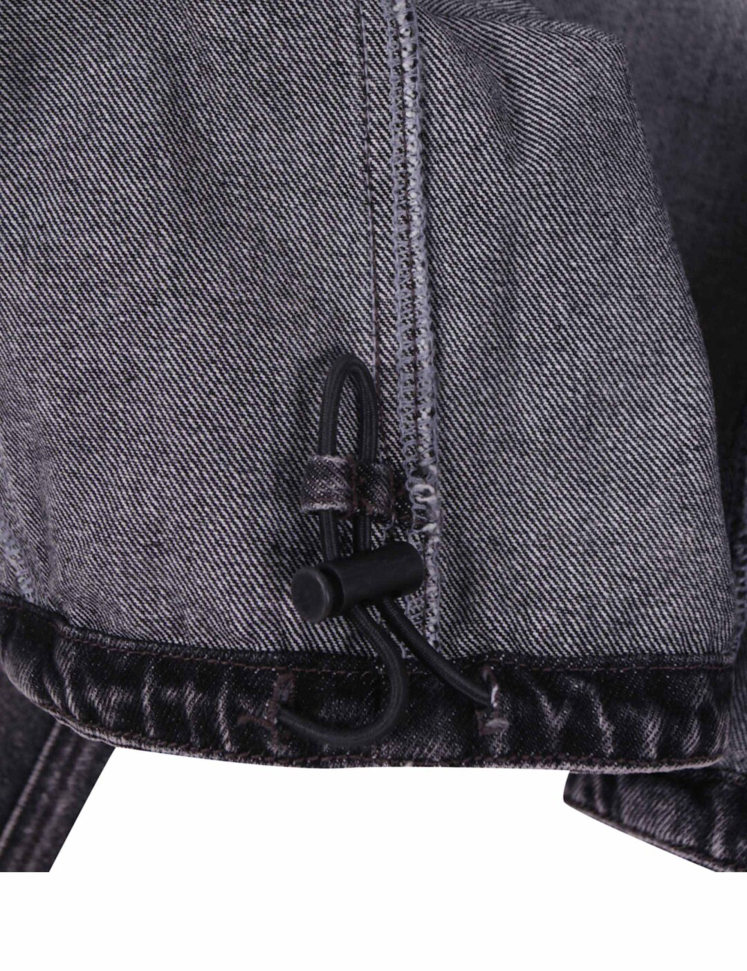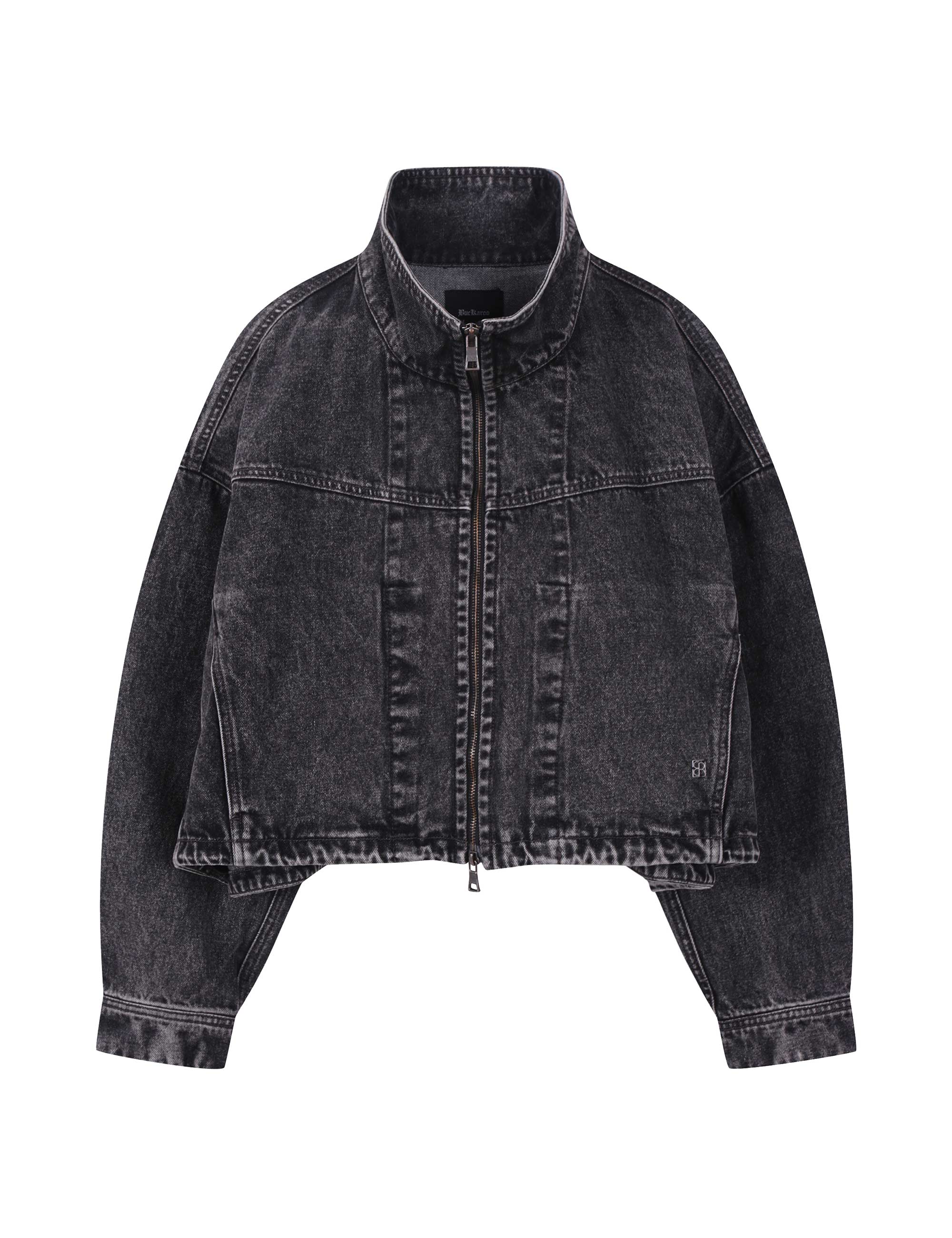 하이넥 집업 디자인으로 스타일링의 다양성 강화 크롭 기장과 입체적인 절개 라인 설계 소매와 몸판 턱 디테일로 볼륨감 있는 실루엣 연출 밑단 스트링으로 자유로운 핏 조절 가능 좌측 하단 금속 라벨 포인트 데님 워싱 특성상 단독 세탁 권장 및 기계 세탁 가능