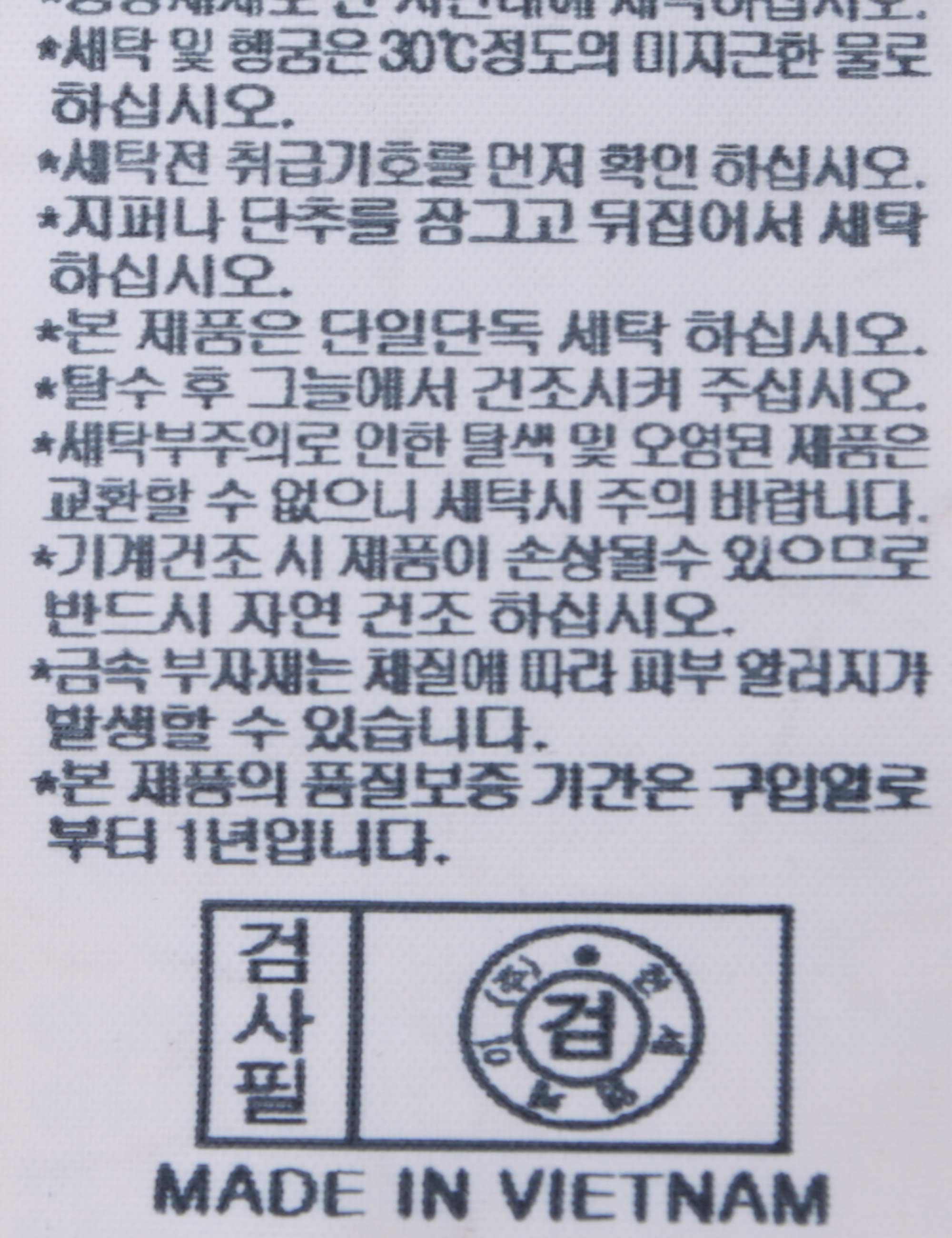 세탁방법 및 취급시 주의사항 중성세제로 단 시간내에 세탁하십시오.(케어라벨참고)