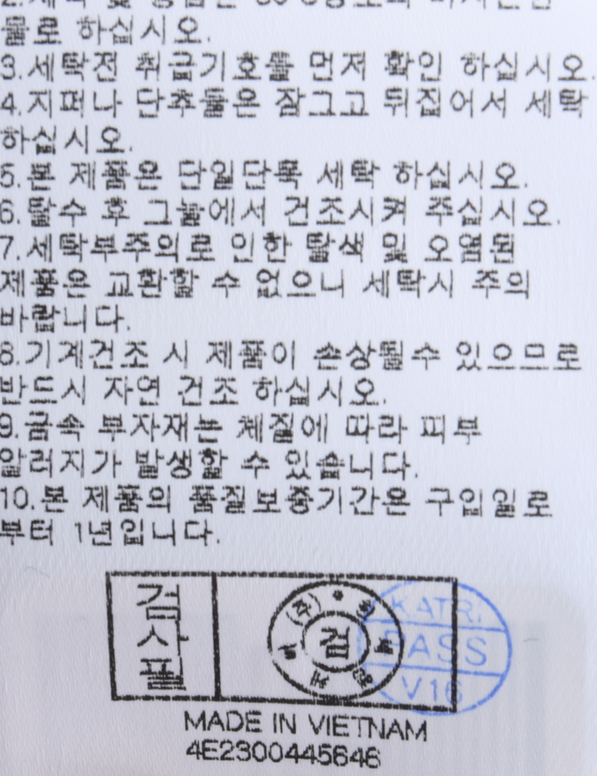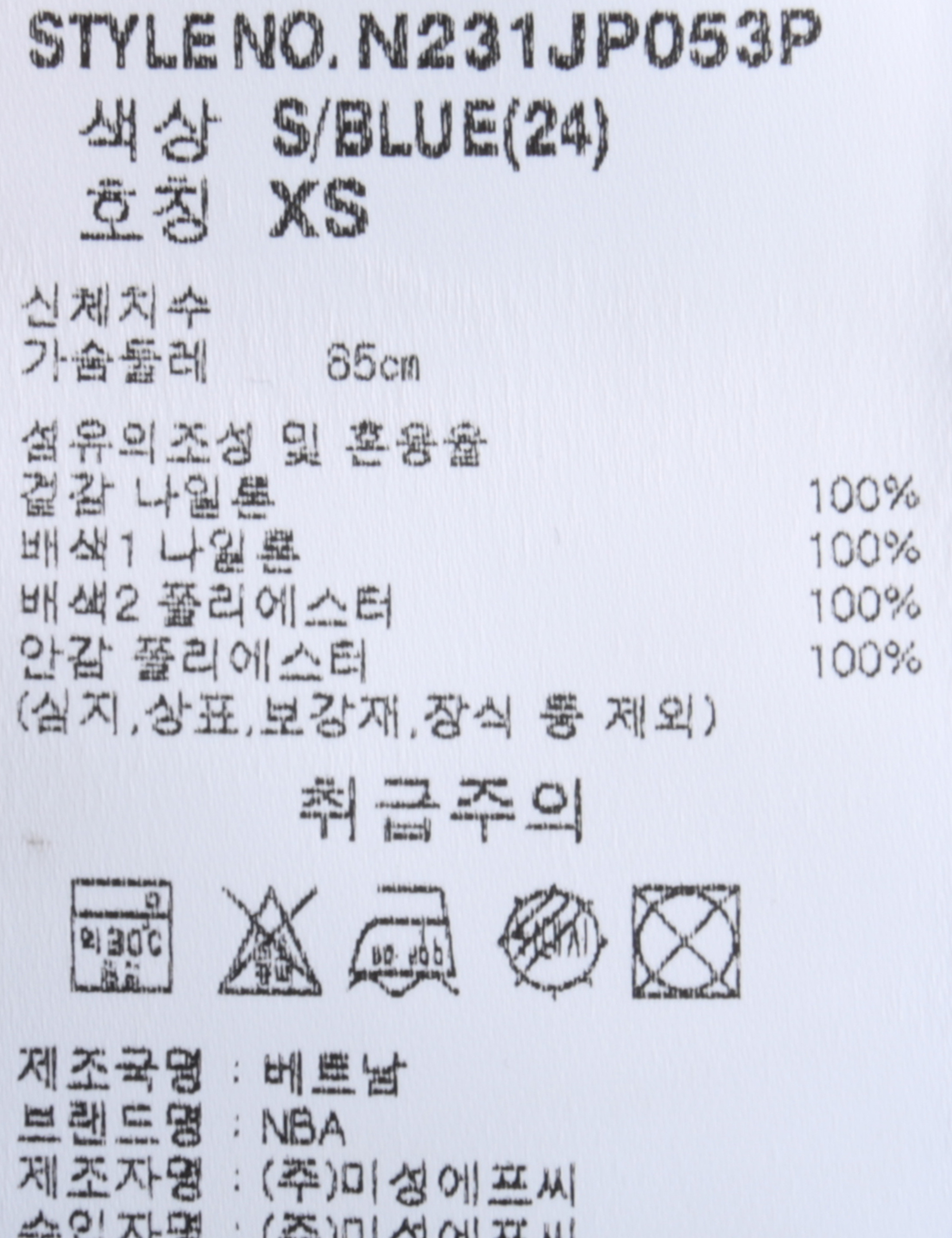 | 세탁방법 및 취급시 주의사항 | 중성세제로 단 시간내에 세탁하십시오.(케어라벨참고) |