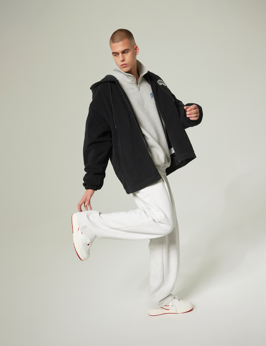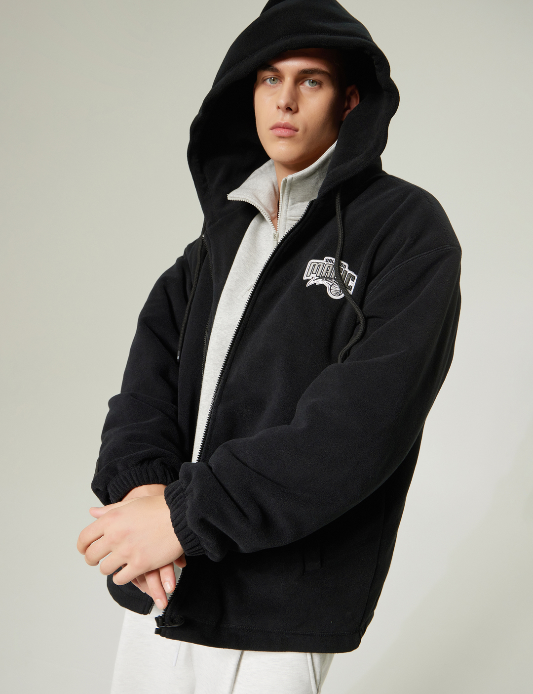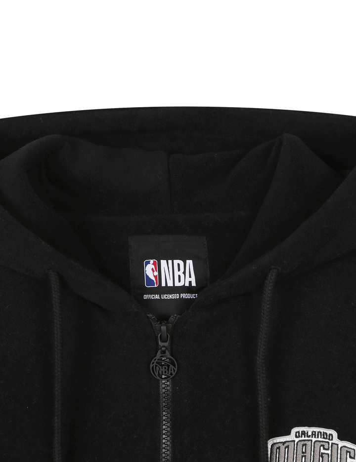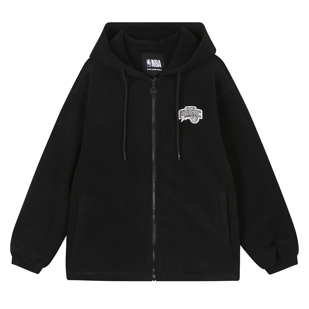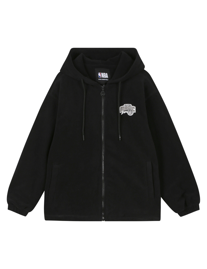 보온성이 우수한 폴라폴리스 원단을 사용하여 가벼우면서도 따뜻하게 착장가능하며 안쪽에 NBA 패턴 불박 안감을 사용하여 퀄리티를 높임.