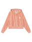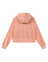 트렌디한 크롭기장의 여성전용 오버핏 후드집업 가슴에 원형 로고 고무 와펜이 사용되어 멋스러움