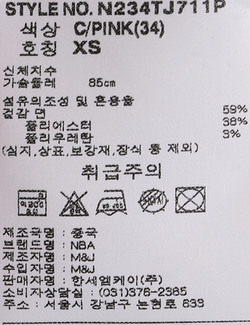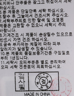 | 세탁방법 및 취급시 주의사항 | 중성세제로 단 시간내에 세탁하십시오.(케어라벨참고) |