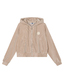 트렌디한 착장이 가능한 크롭형태의 집업으로 가슴에 원형 로고 고무 와펜이 작업되어 포인트를 준 스타일.