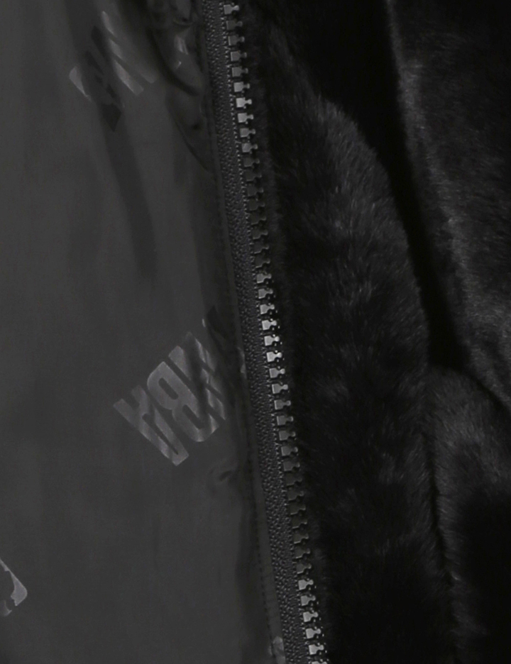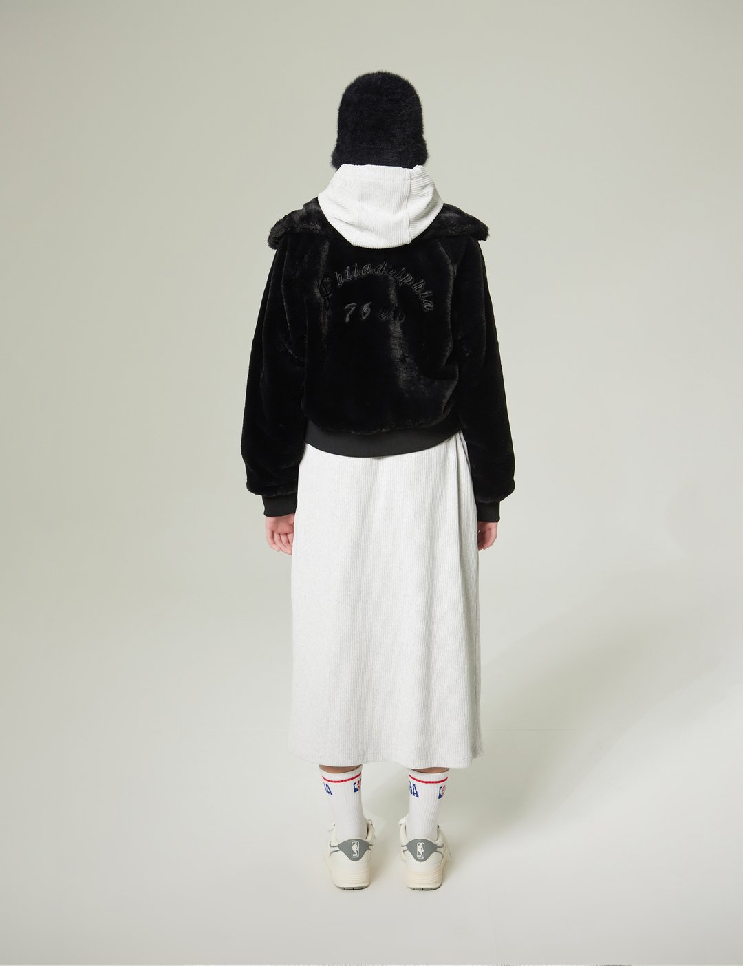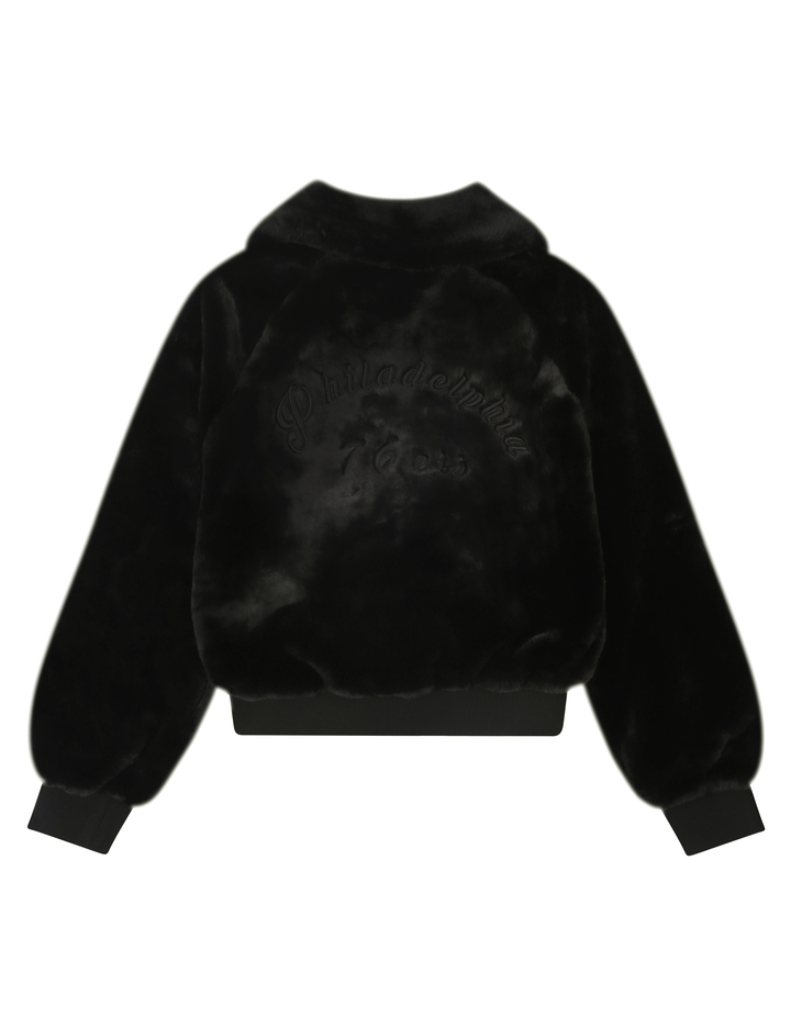가슴에 견고한 자수와펜과 등판의 레터가 포인트가 되는 스타일로 부드럽고 폭신한 터치감의 FUR원단을 사용하여 보온성을 높임.