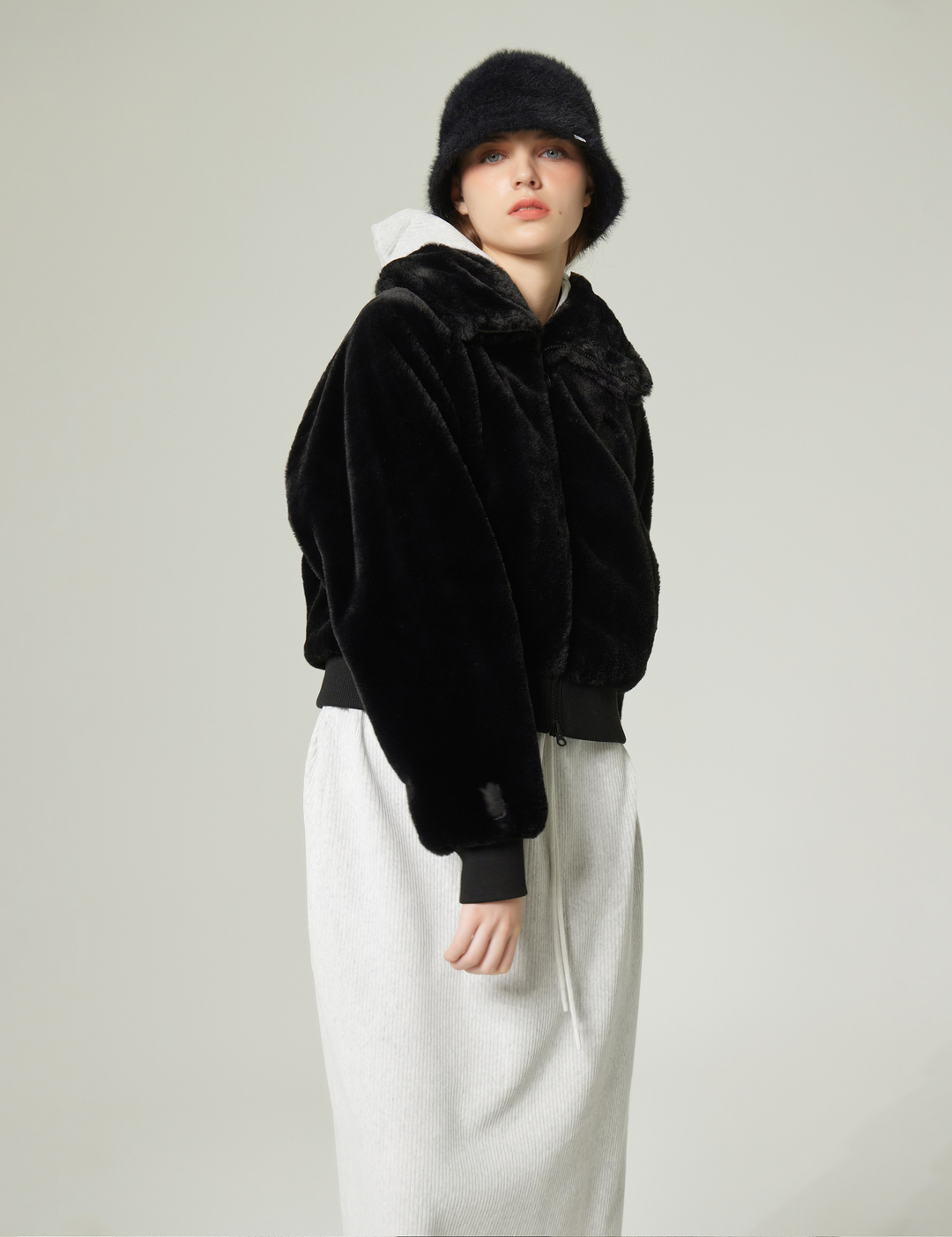 캐주얼한 루즈핏의 FUR 카라 크롭점퍼.