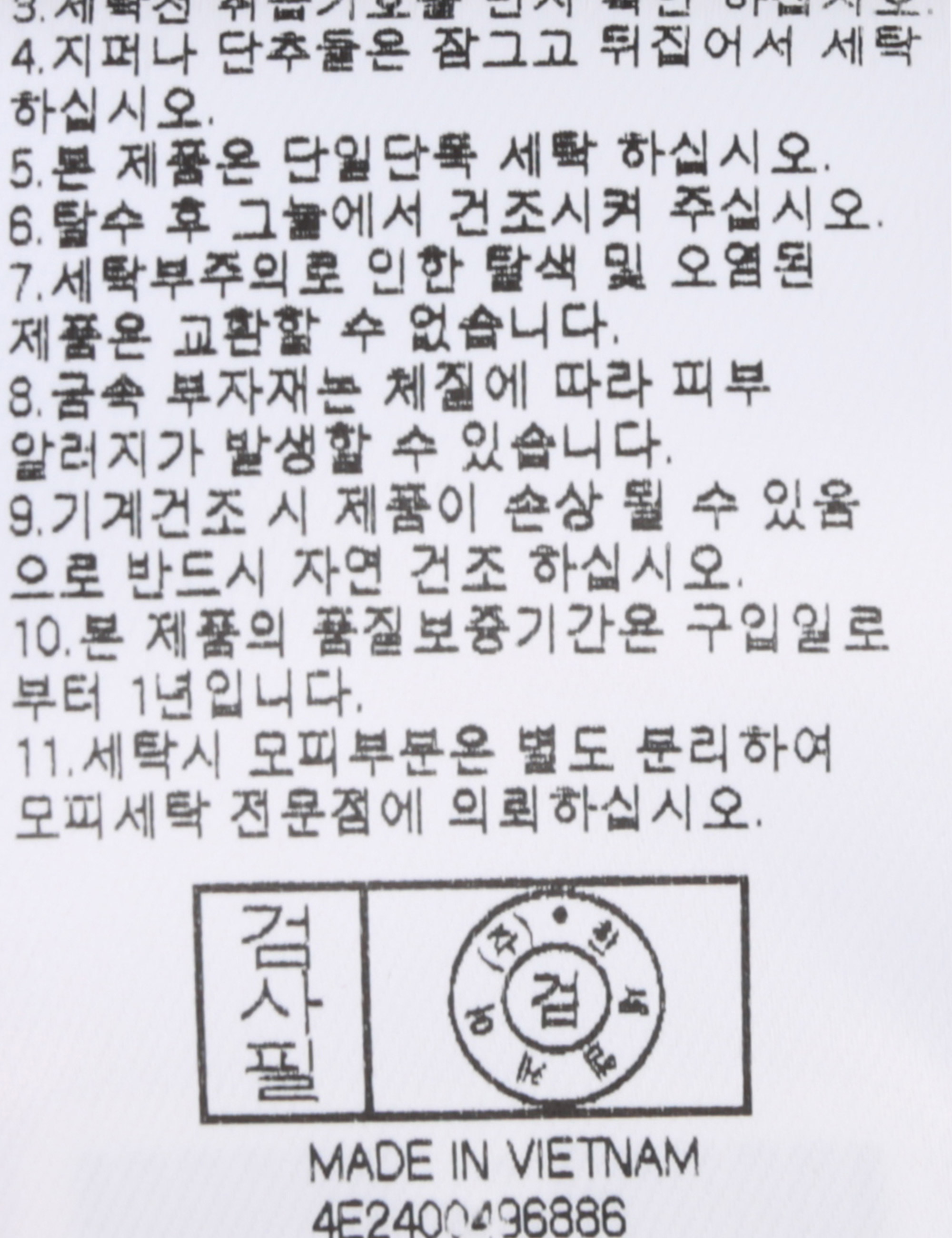 | 세탁방법 및 취급시 주의사항 | 본 제품은 손세탁 하십시오.(케어라벨참고) |