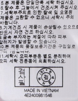 | 세탁방법 및 취급시 주의사항 | 중성세제로 단 시간내에 세탁하십시오.(케어라벨참고) |