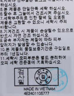 | 세탁방법 및 취급시 주의사항 | 중성세제로 단 시간내에 세탁하십시오.(케어라벨참고) |