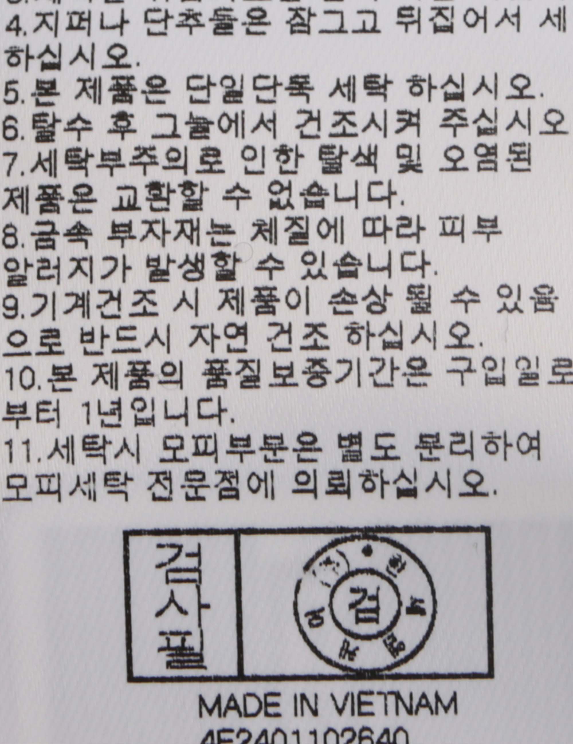 | 세탁방법 및 취급시 주의사항 | 본 제품은 손세탁 하십시오.(케어라벨참고) |