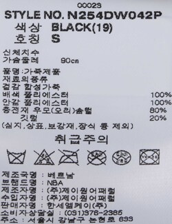 | 세탁방법 및 취급시 주의사항 | 본 제품은 특성상 반드시 가죽의류 전문세탁소에 의뢰하시길 바랍니다. |