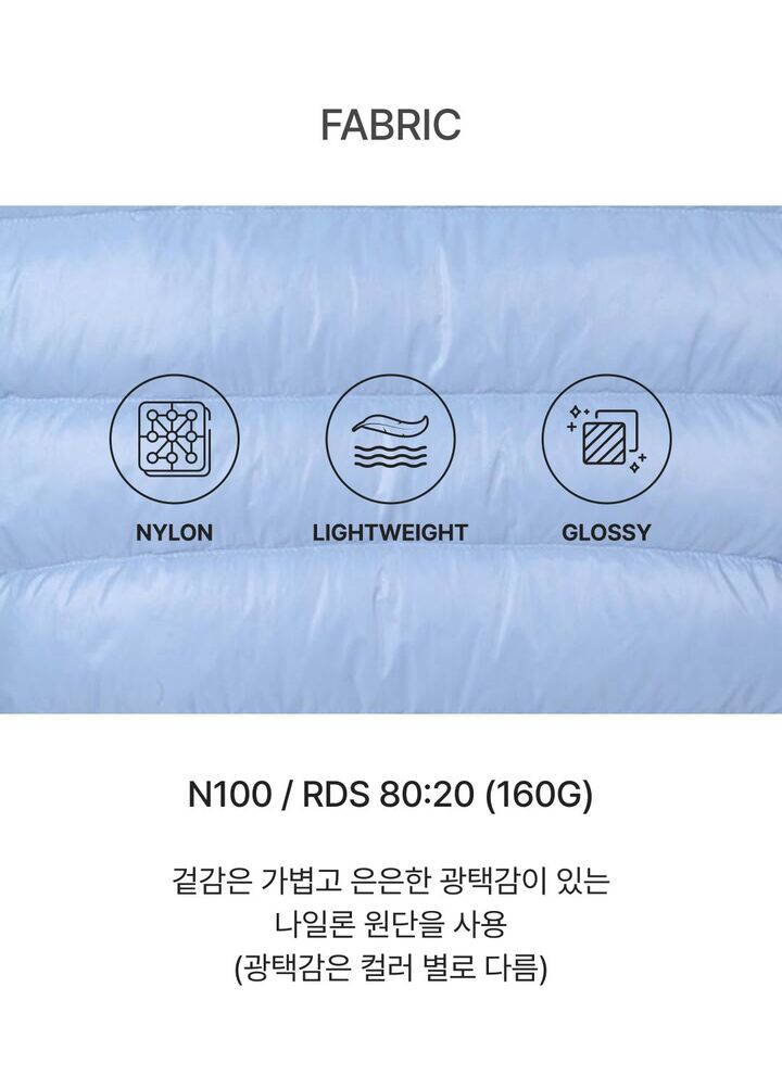 브랜드 홈 바로가기| 제품소재 | [겉감]나일론100% [안감1]폴리에스터100% [안감2]폴리에스터100% [충전재]우모(오리)솜털80% 깃털20% |