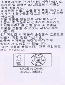 세탁방법 및 취급시 주의사항 중성세제로 단 시간내에 세탁하십시오.(케어라벨참고)