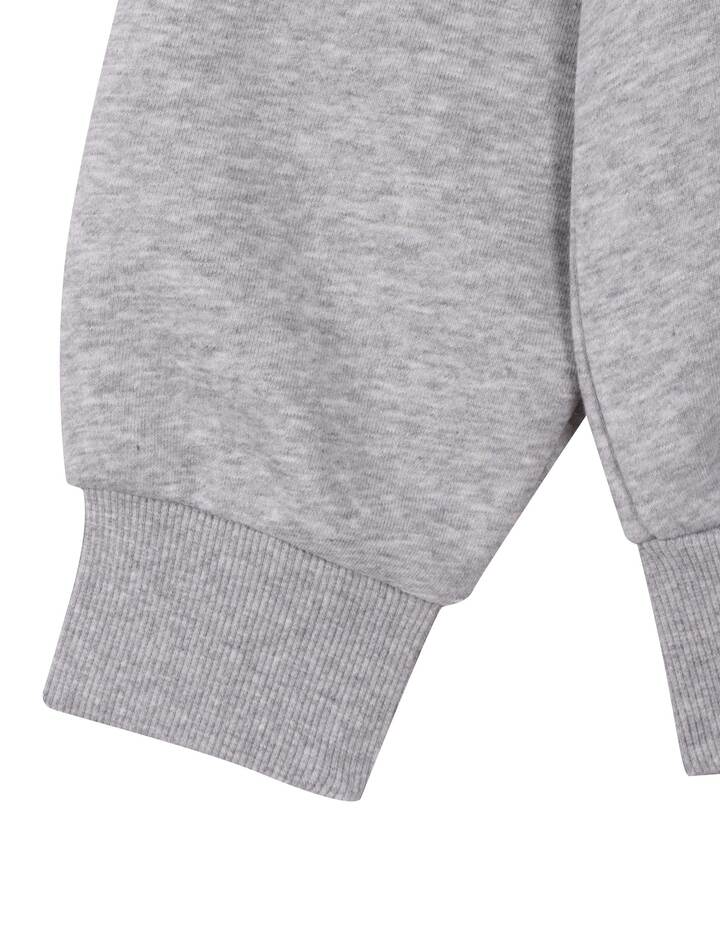 팀 레터를 아플리케 및 자수 기법으로 캐쥬얼하게 표현한 백 레터링 후드 집업