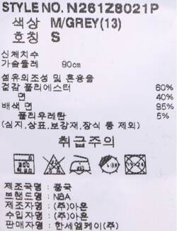 제품소재 [겉감]폴리에스터60% 면40% [배색]면95% 폴리우레탄5%