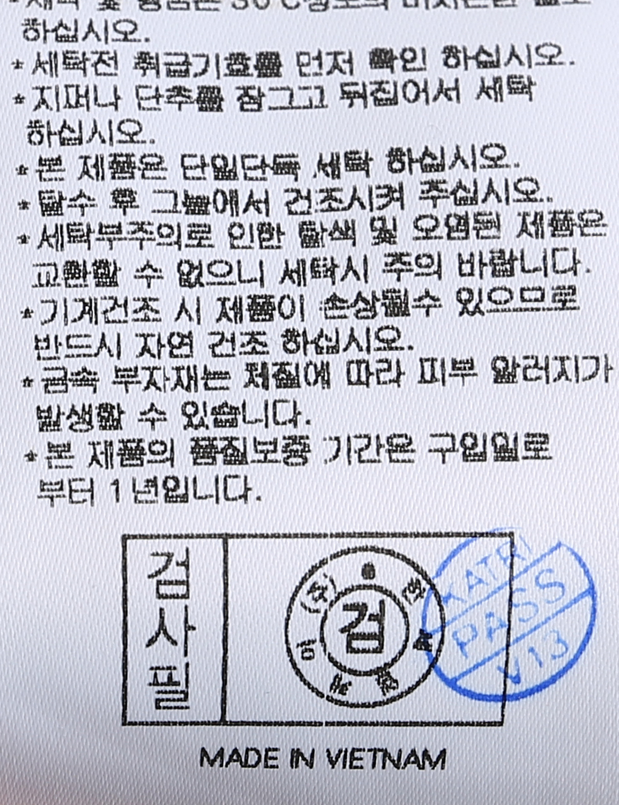 | 세탁방법 및 취급시 주의사항 | 중성세제로 단 시간내에 세탁하십시오.(케어라벨참고) |