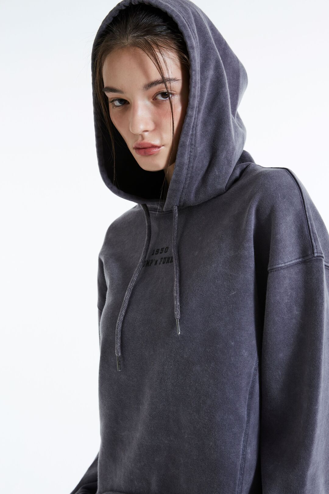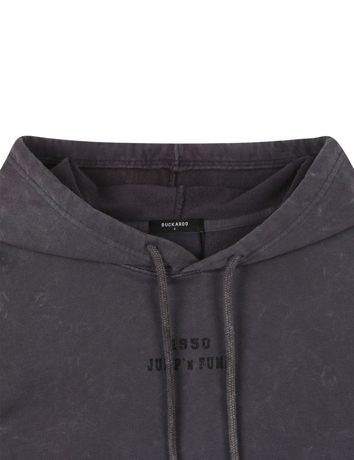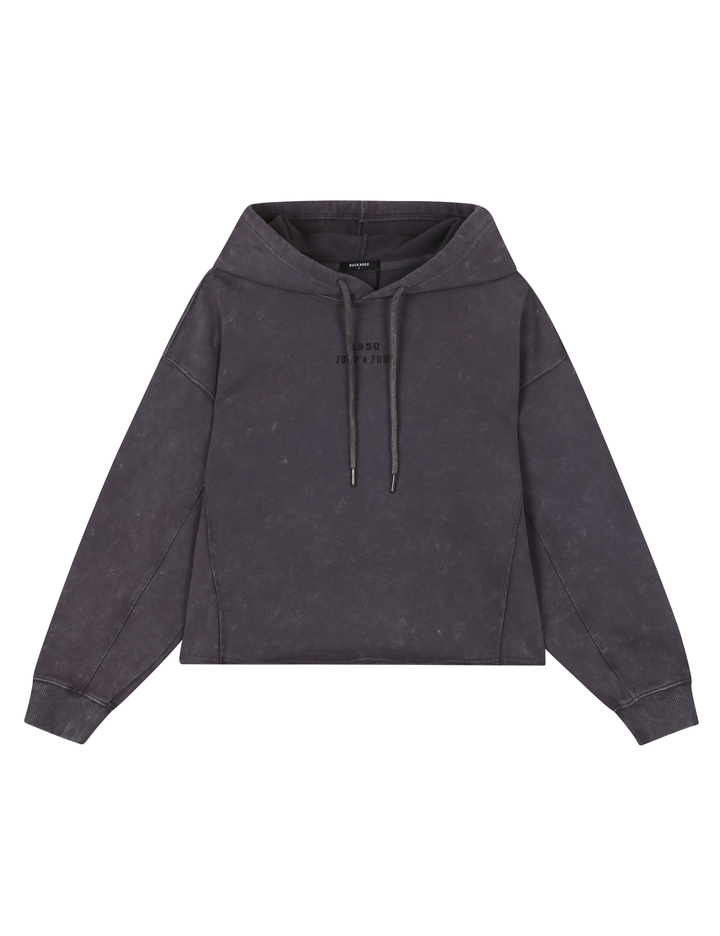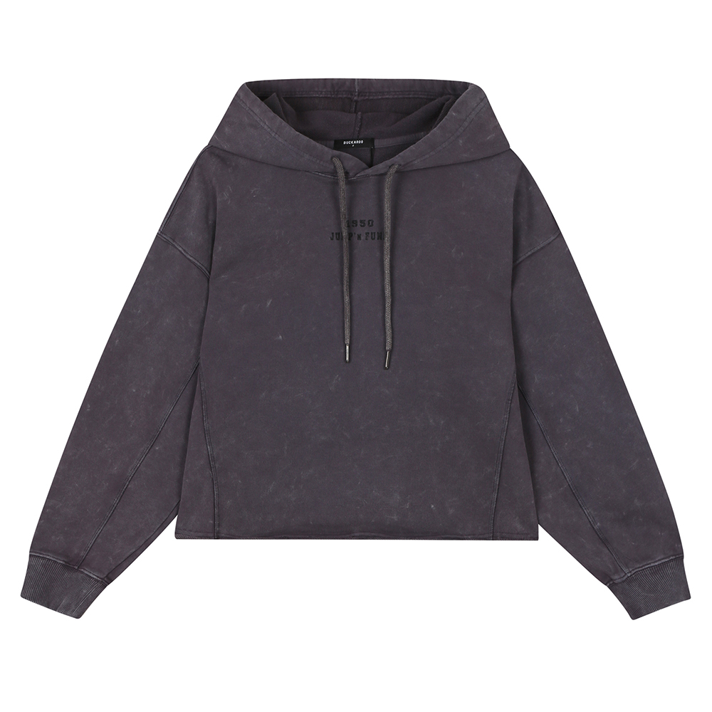 * 원단패치아트웍 크롭 후드 티셔츠