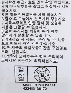 세탁방법 및 취급시 주의사항 본 제품은 손세탁 하십시오.(케어라벨참고)