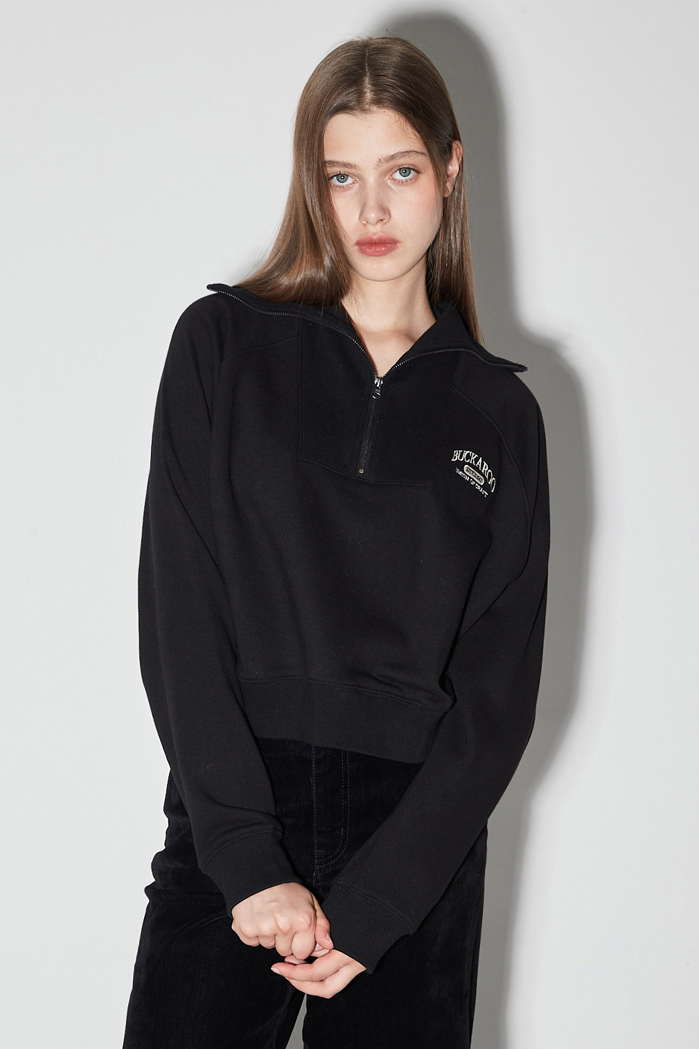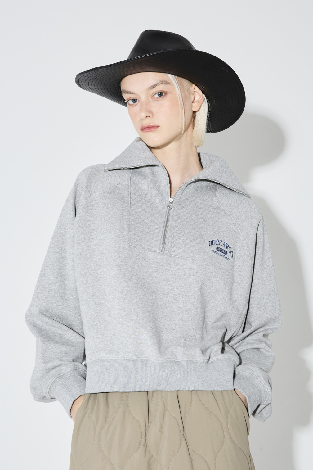 *루즈한 핏으로 내추럴한 실루엣을 보여주는 반집업 스타일의 맨투맨티셔츠.