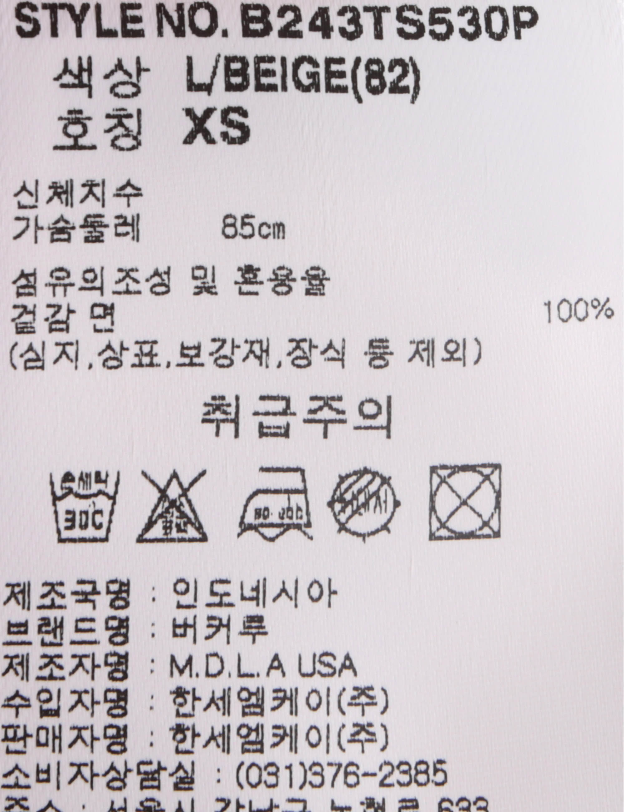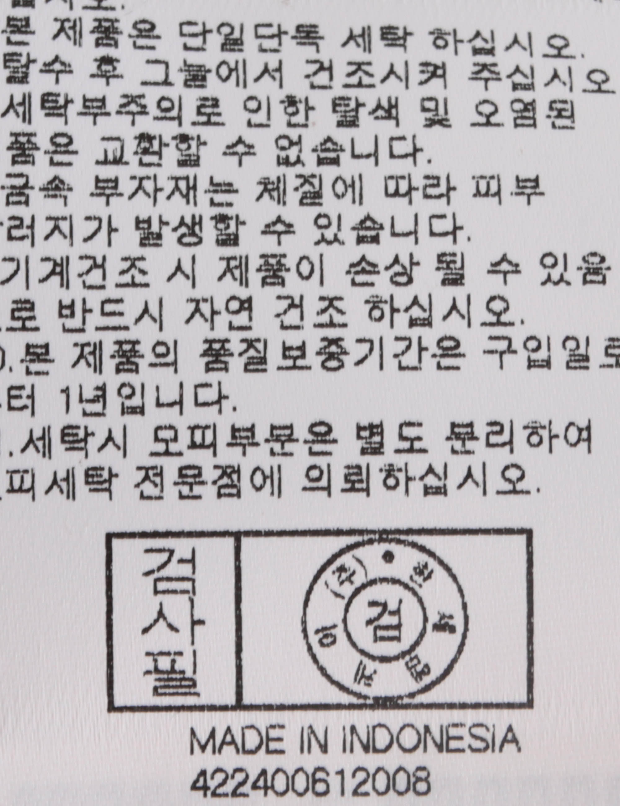 | 세탁방법 및 취급시 주의사항 | 본 제품은 손세탁 하십시오.(케어라벨참고) |