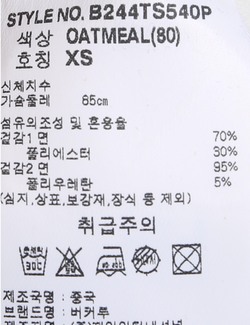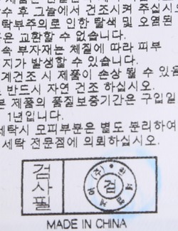 | 세탁방법 및 취급시 주의사항 | 본 제품은 손세탁 하십시오.(케어라벨참고) |