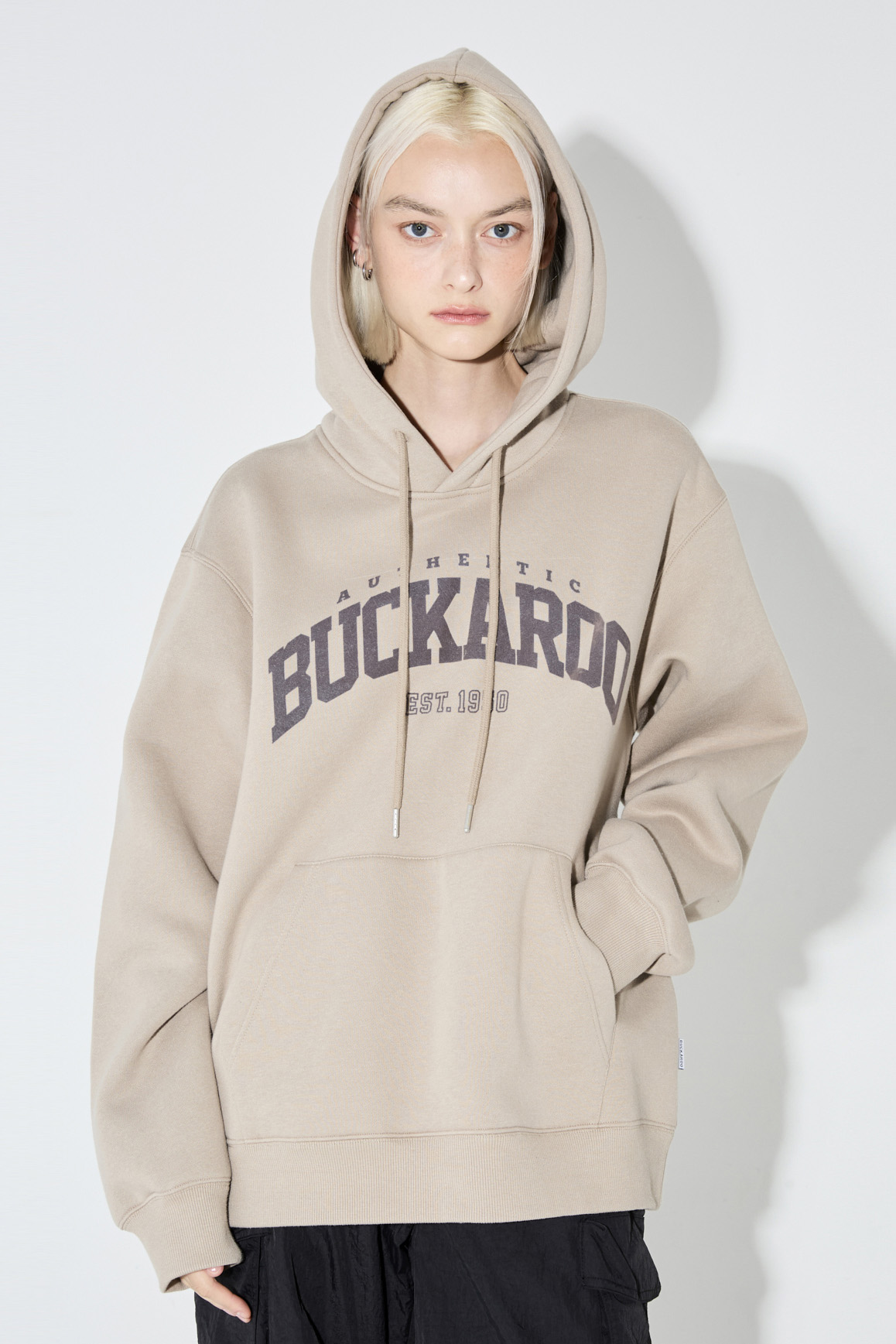 -데일리룩으로 착용하기에 용이한 캐주얼 무드의 후드티셔츠