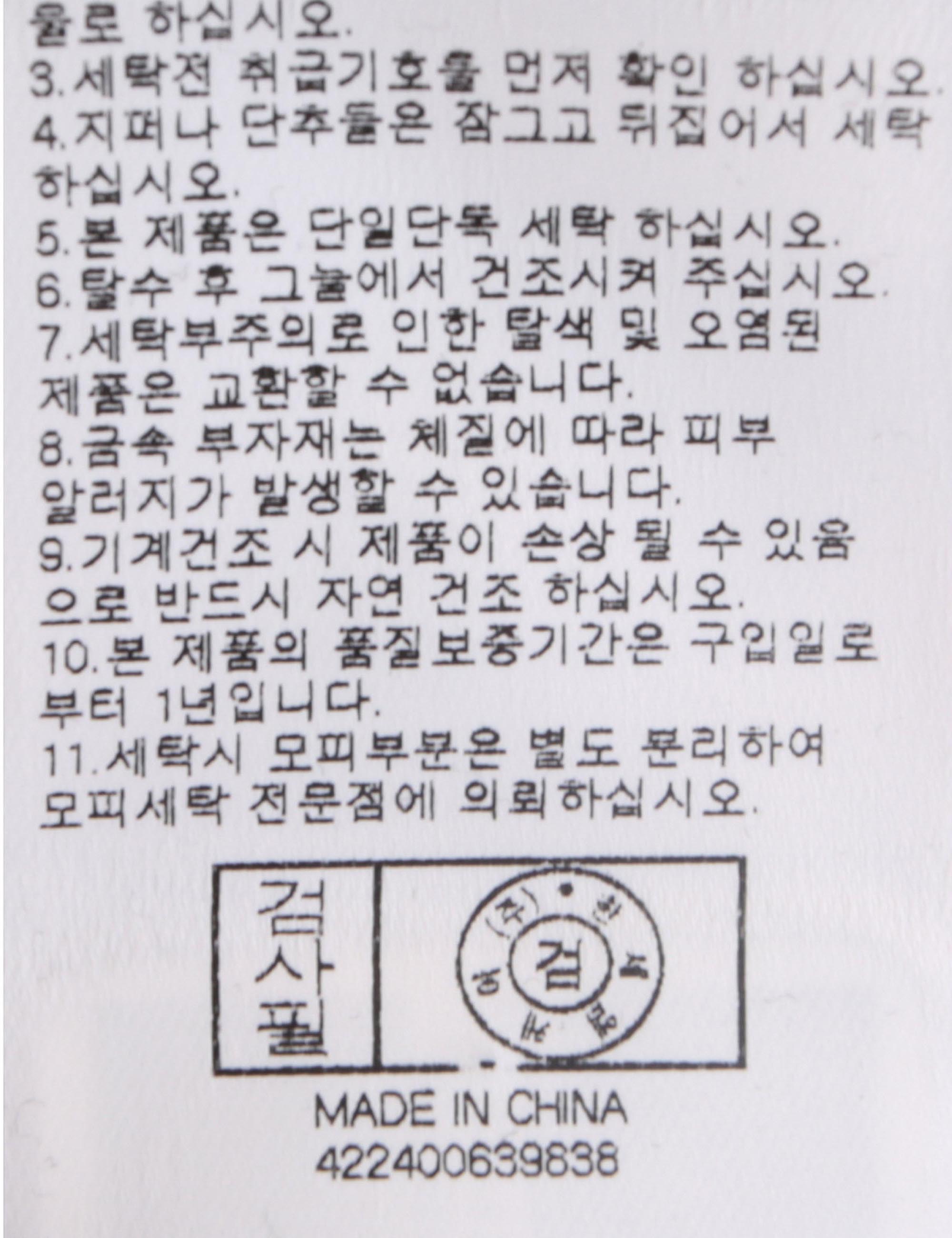 세탁방법 및 취급시 주의사항 본 제품은 단일단독 세탁하십시오. (세탁라벨참고)