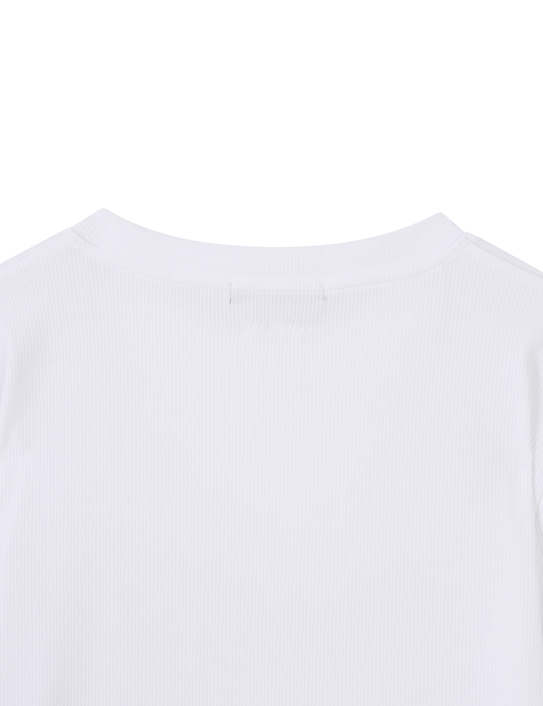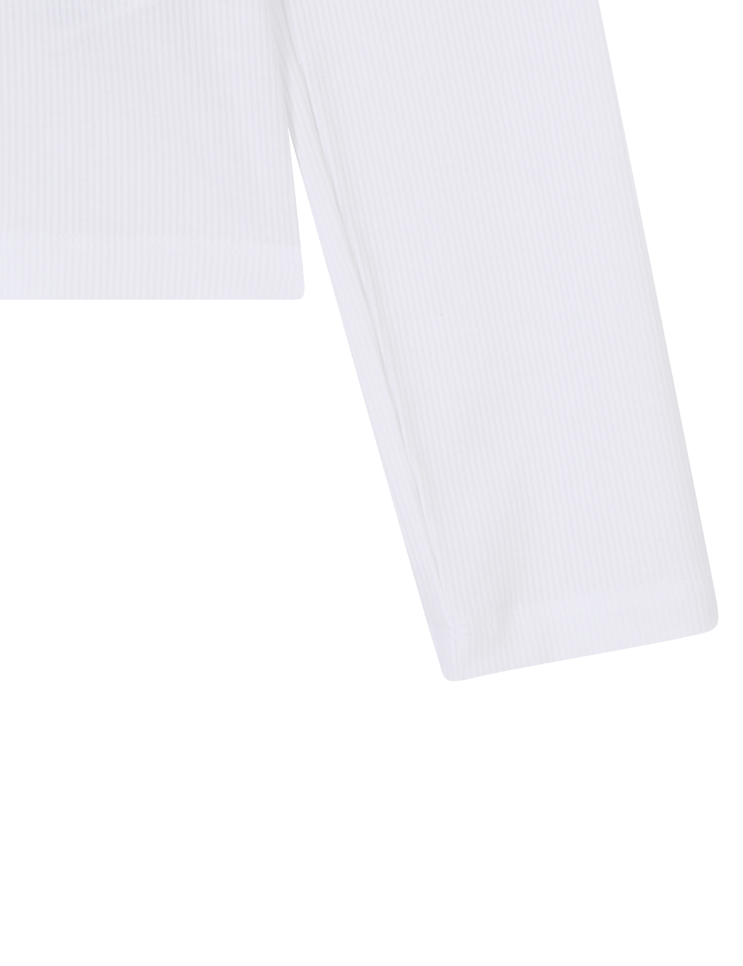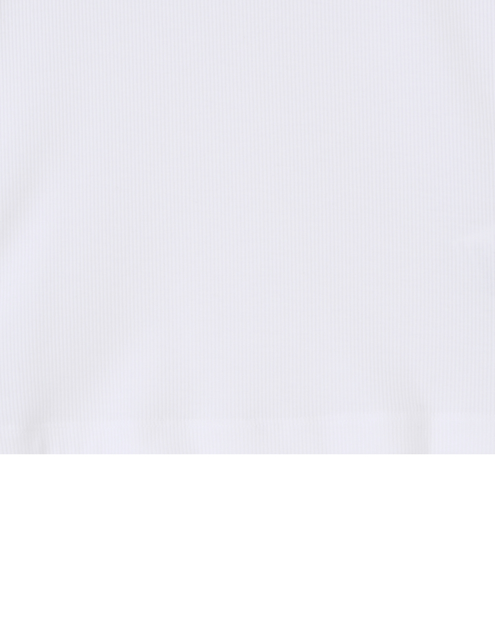 *신축성 있는 립 골지소재를 사용해 바디에 슬림하게 핏되는 실루엣을 연출하는 모크넥 탑