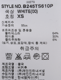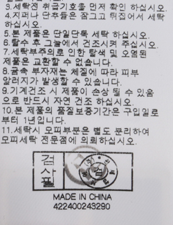 | 세탁방법 및 취급시 주의사항 | 본 제품은 손세탁 하십시오.(케어라벨참고) |