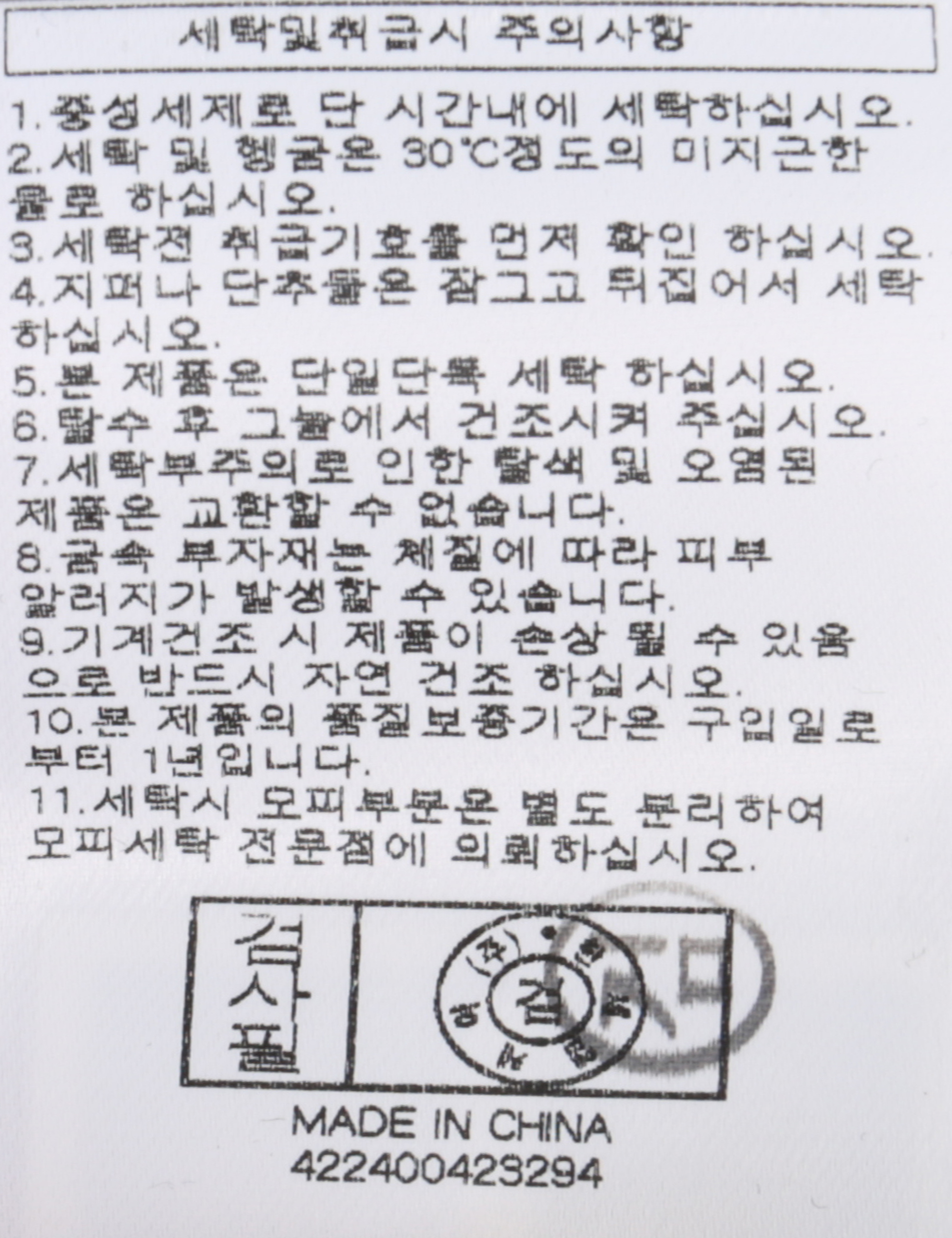 | 세탁방법 및 취급시 주의사항 | 본 제품은 손세탁 하십시오.(케어라벨참고) |