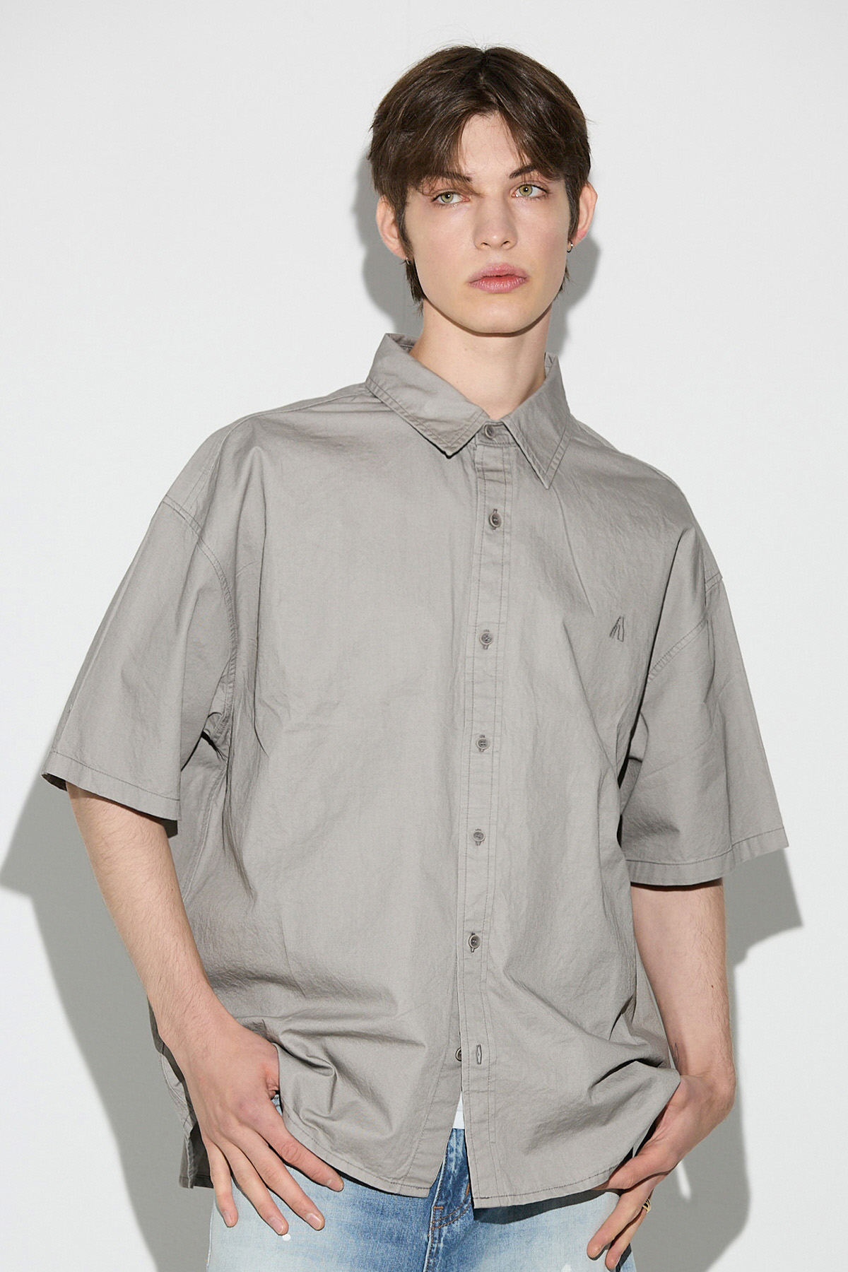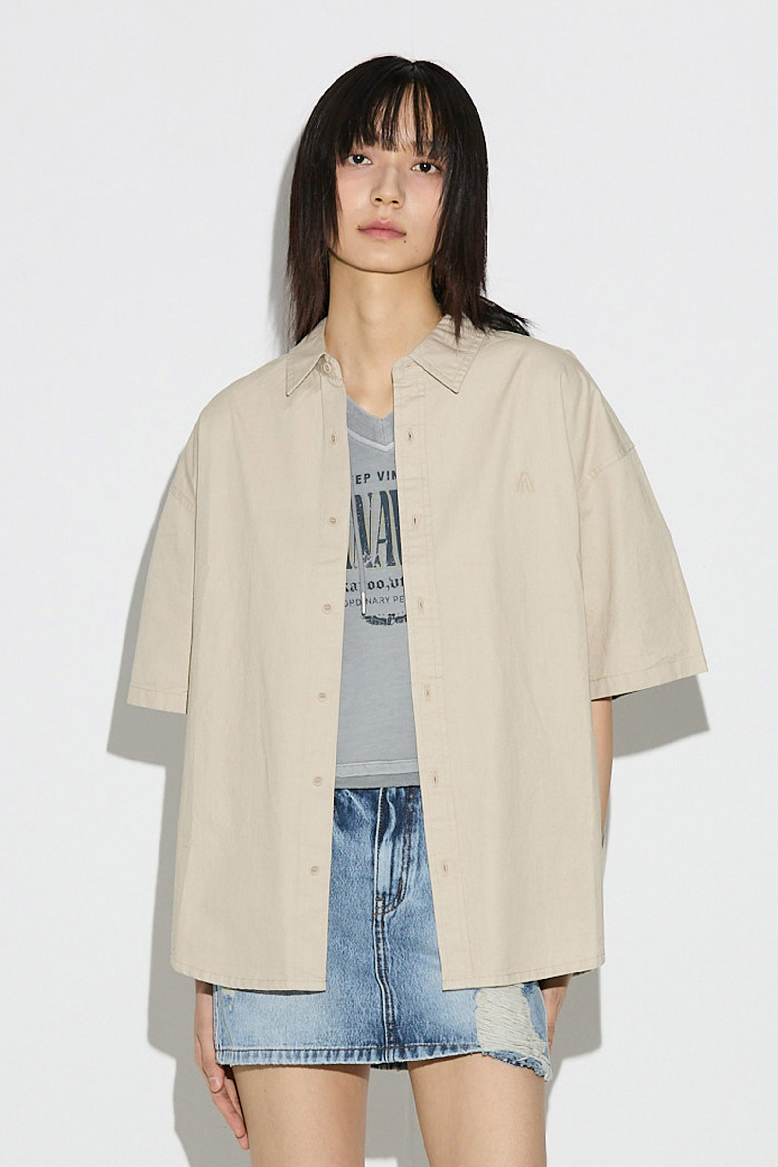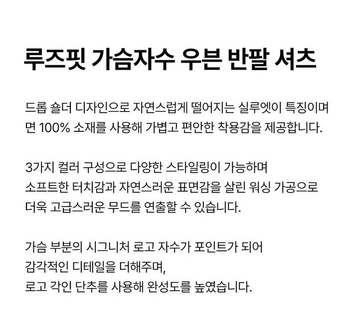 | 상품명 | 루즈핏 가슴자수 우븐 반팔 셔츠(B252Z0011P) |