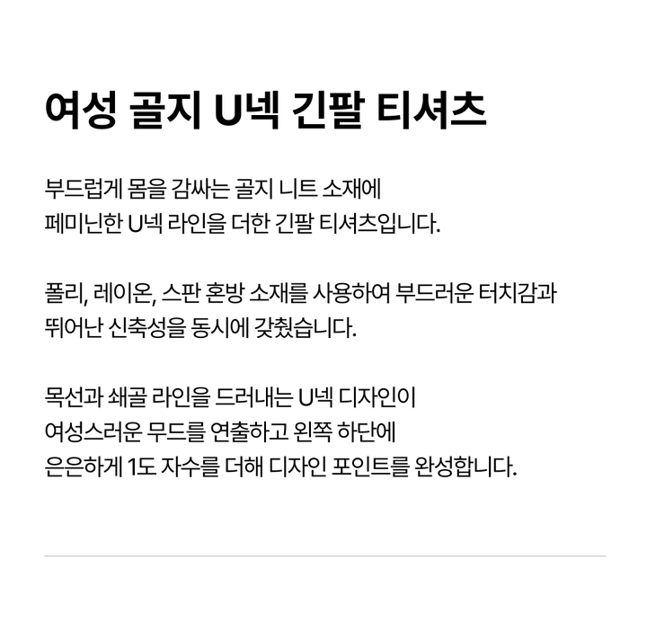 | 상품명 | 여성 골지 U넥 긴팔 티셔츠(B253TS530P) |