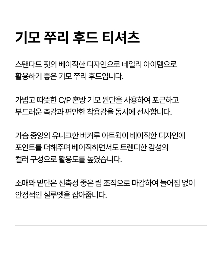 | 상품명 | 기모 쭈리 후드 티셔츠(B254Z1020P) |