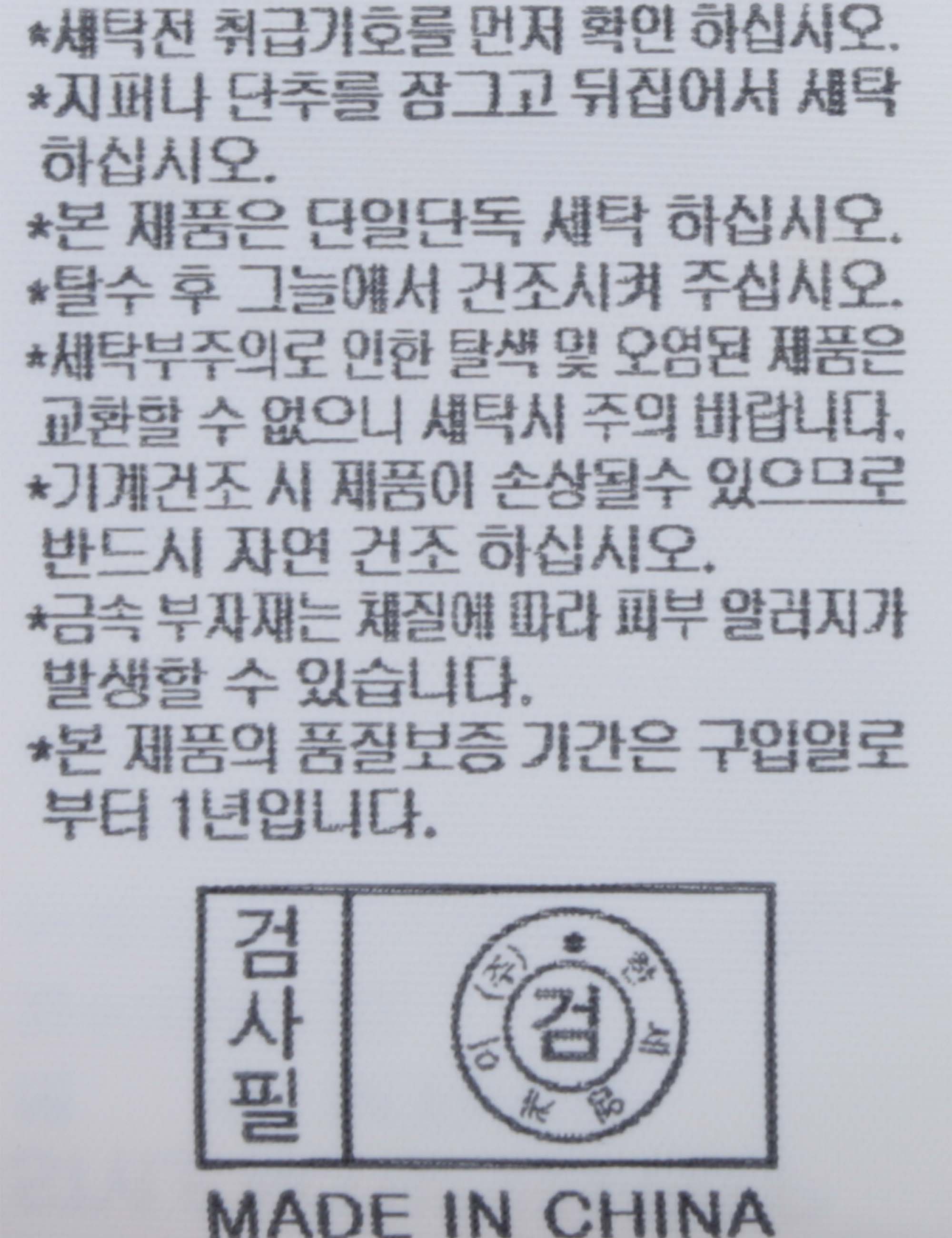 세탁방법 및 취급시 주의사항 중성세제로 단 시간내에 세탁하십시오.(케어라벨참고)
