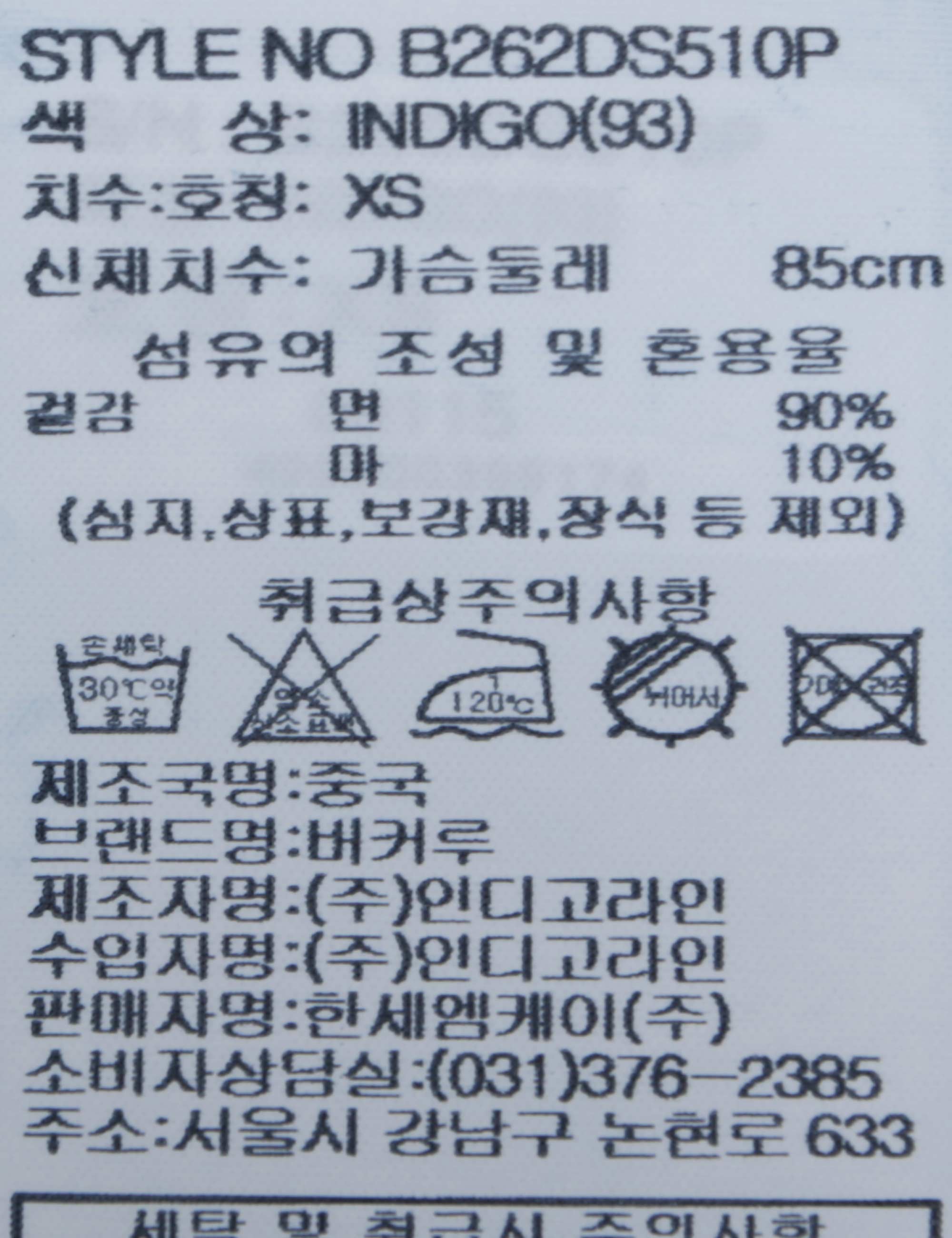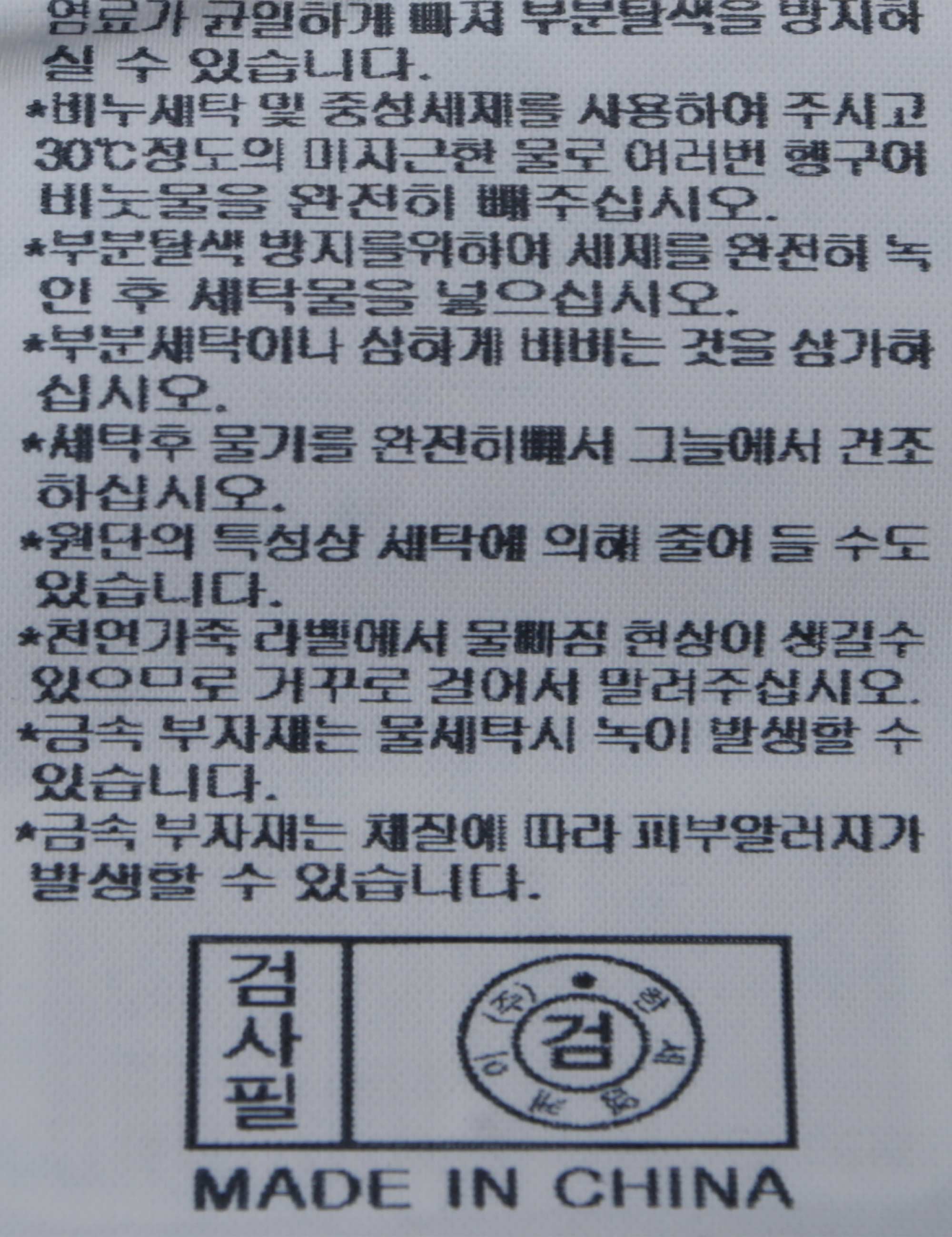 | 세탁방법 및 취급시 주의사항 | 본 제품은 손세탁 하십시오.(케어라벨참고) |