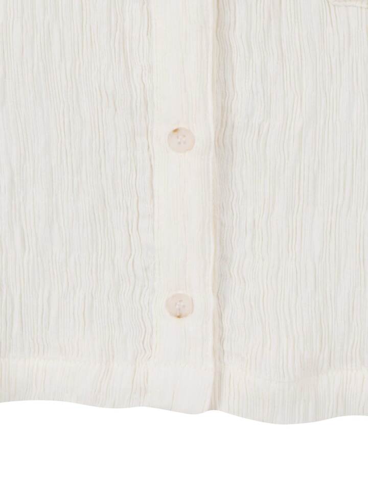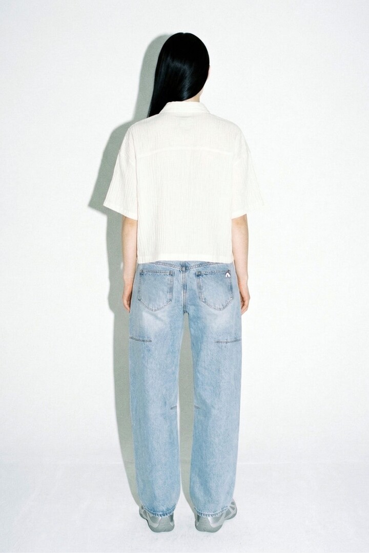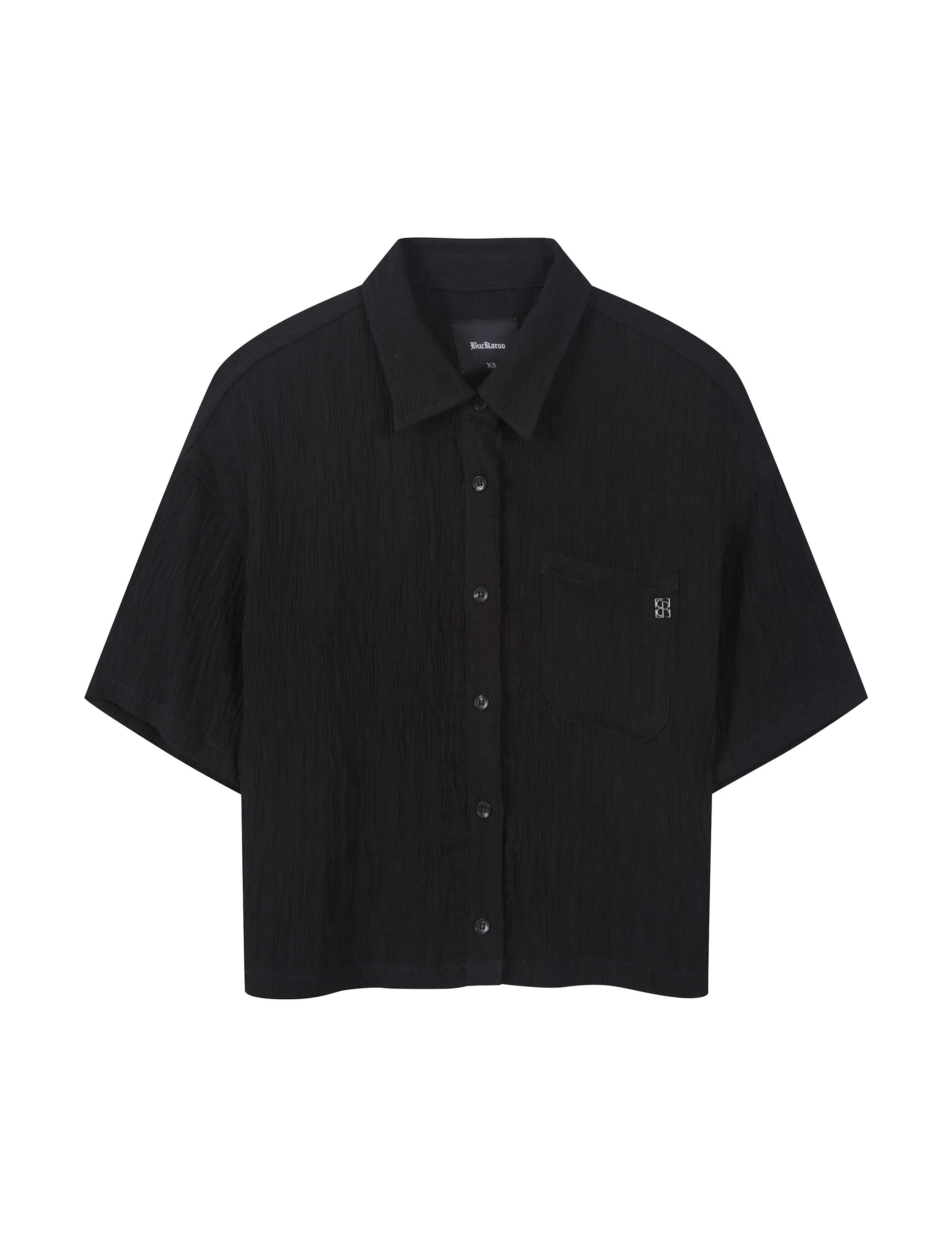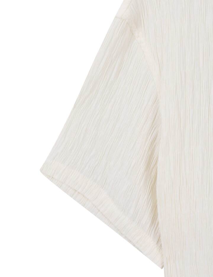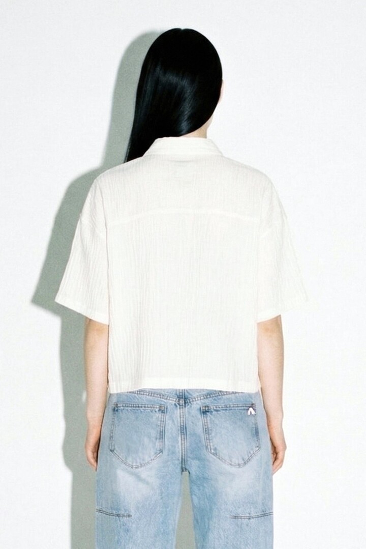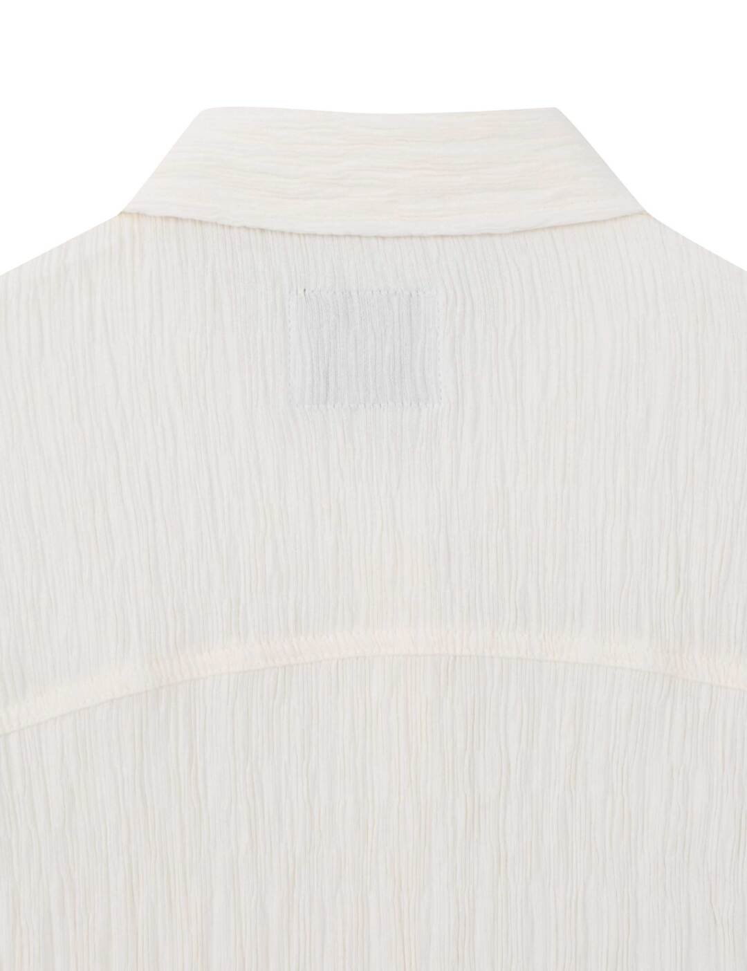 크링클 소재 특유의 내추럴한 텍스처로 여유로운 실루엣을 완성한 여성용 루즈핏 원포켓 반팔 셔츠